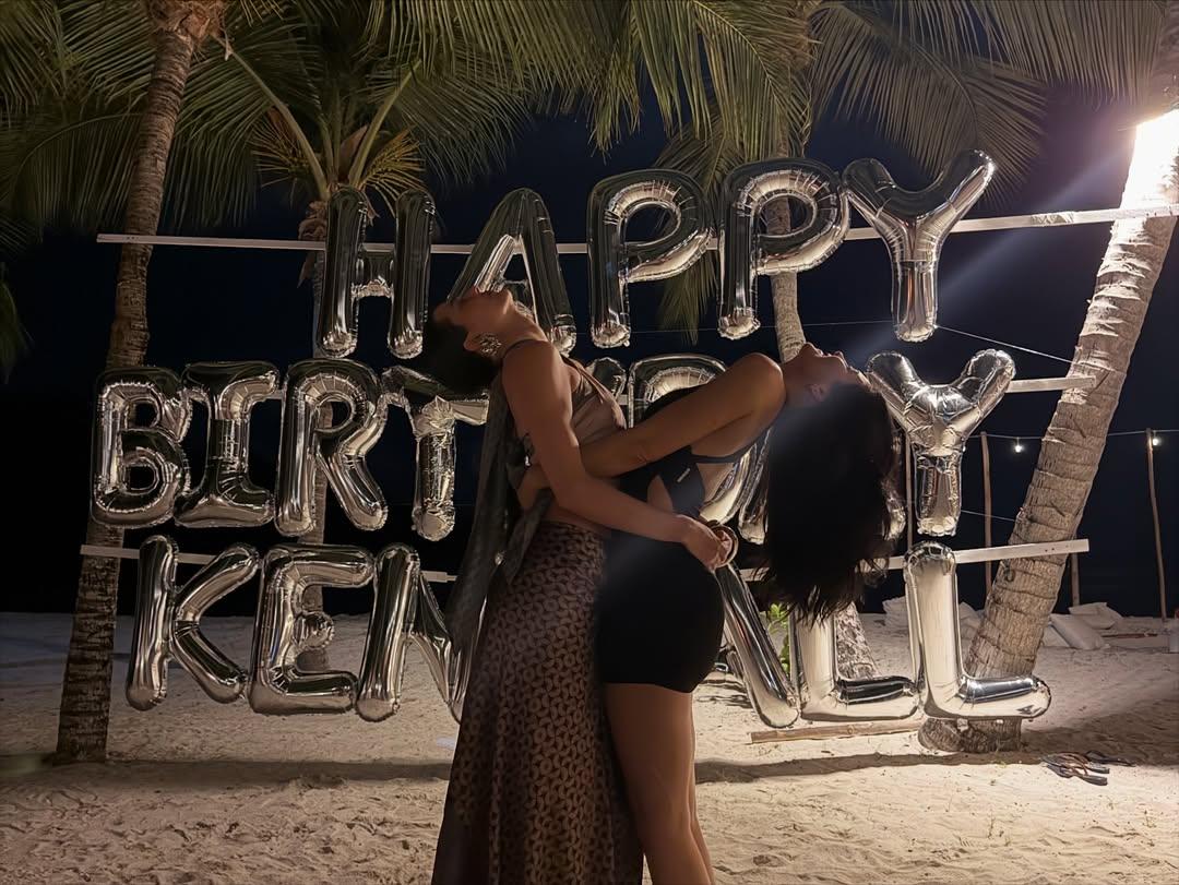 На фотографии Джастин закольцевал Хейли в свои объятия и по-собственнически положил руки чуть ниже ее талии. Девушка же нежно поцеловала его в щеку. На фоне молодых людей — огромная надпись в виде серебряных воздушных шаров «Happy Birthday, Kendall», в комментариях — тысячи милых высказываний: