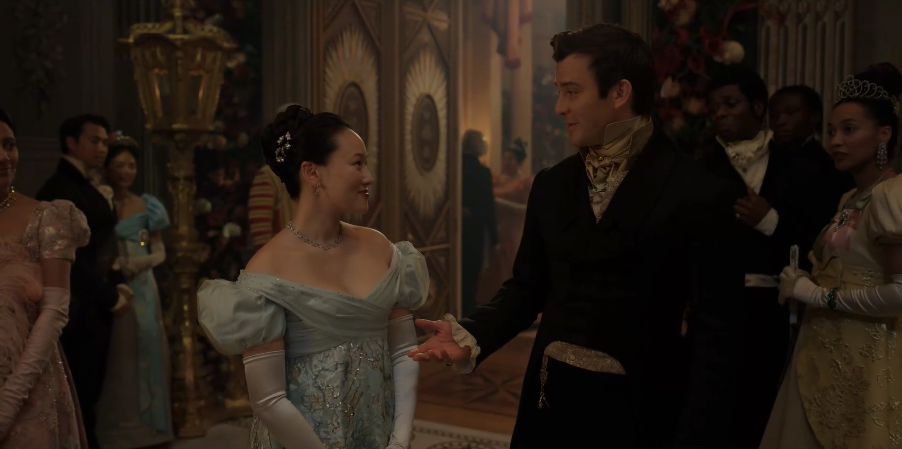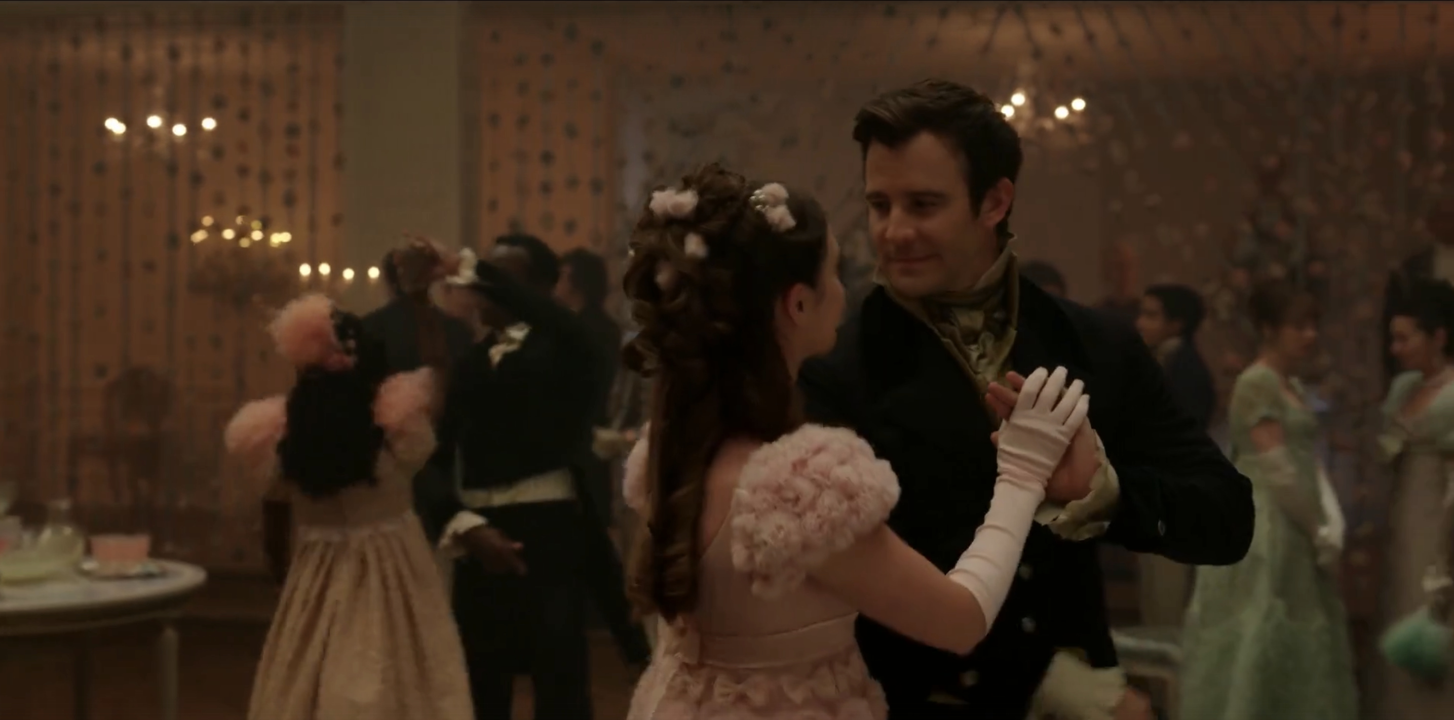 Почему он переломный? Напомню: Софи — незаконнорожденная дочь графа. И даже после того, как остальные герои узнали ее настоящую историю, отношение к ней со стороны общества осталось предвзятым. Собственно, открытое выражение чувств к ней и приглашение на танец от Бенедикта поставило высшее общество в недоумение.