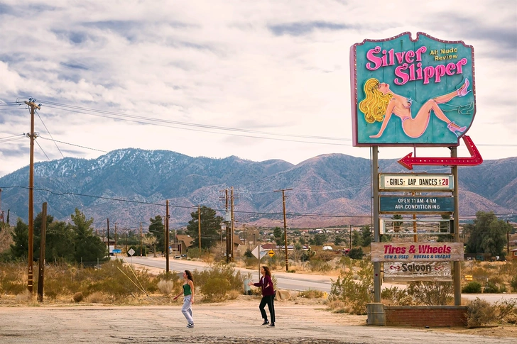 Действие теперь разворачивается не в душном пригороде, а в Лос-Анджелесе и его пустынных окрестностях, и это географическое смещение тянет за собой и всю визуальную палитру. Пыльные оттенки, цвет выжженной земли, глубокие закатные тона, ощущение бесконечного движения куда-то на запад — все это создает совершенно иное настроение кадра.
