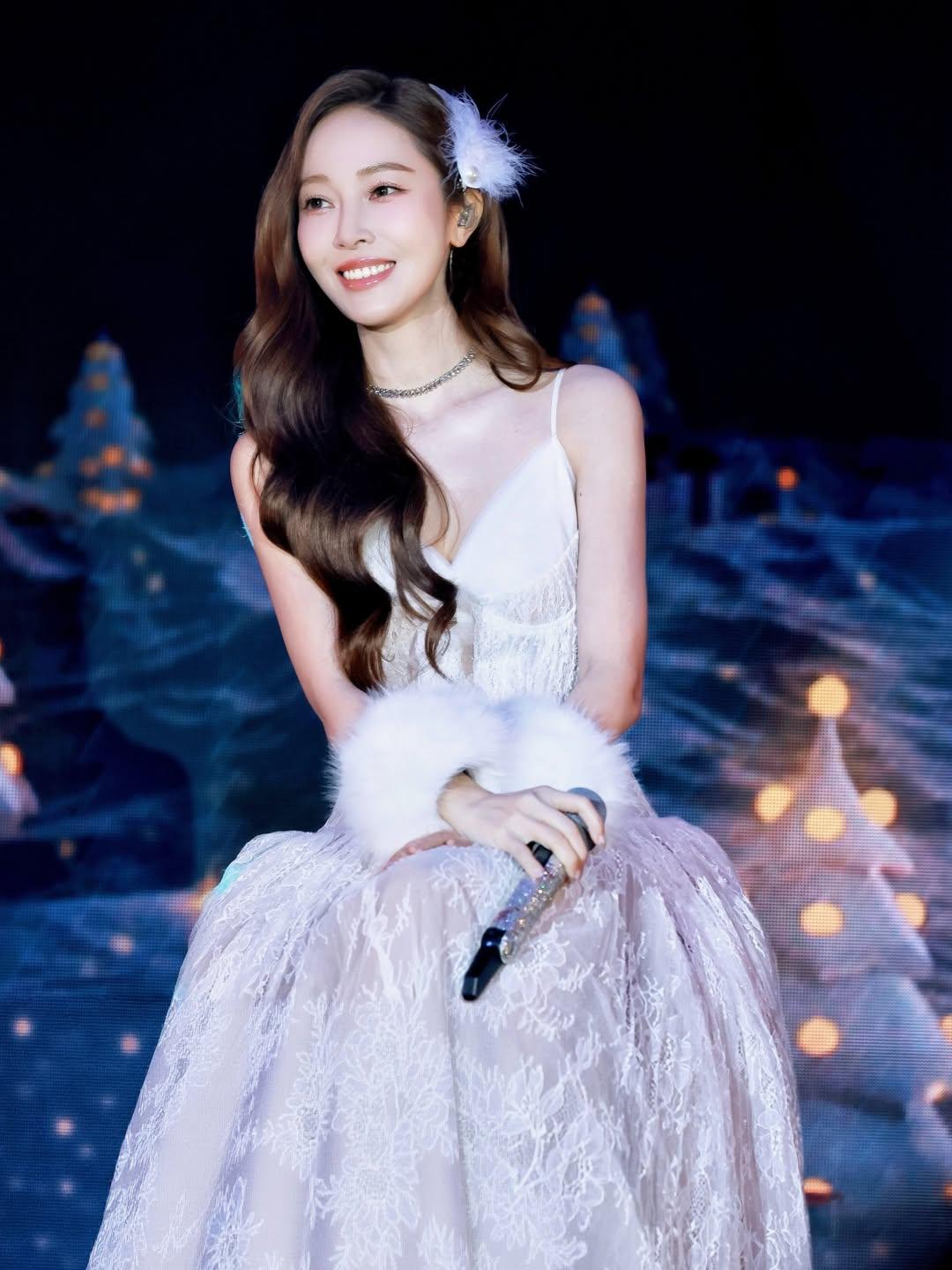 Бывшая участница Girls' Generation Джессика Чон встретила Рождество на сцене во время музыкального мероприятия в Гонконге. «Ледяная принцесса» поразила поклонников элегантным образом — белым кружевным платьем с меховыми аксессуарами и перчатками.