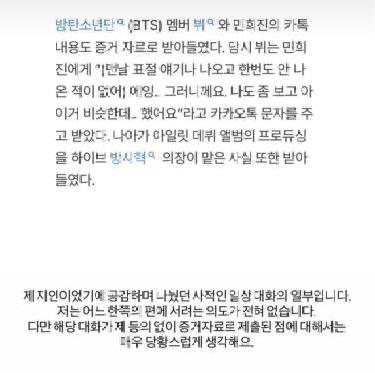 После того как стало известно об использовании личной переписки, Тэхён впервые публично отреагировал, опубликовав заявление в своих соцсетях. Он подчеркнул, что разговор носил частный характер: