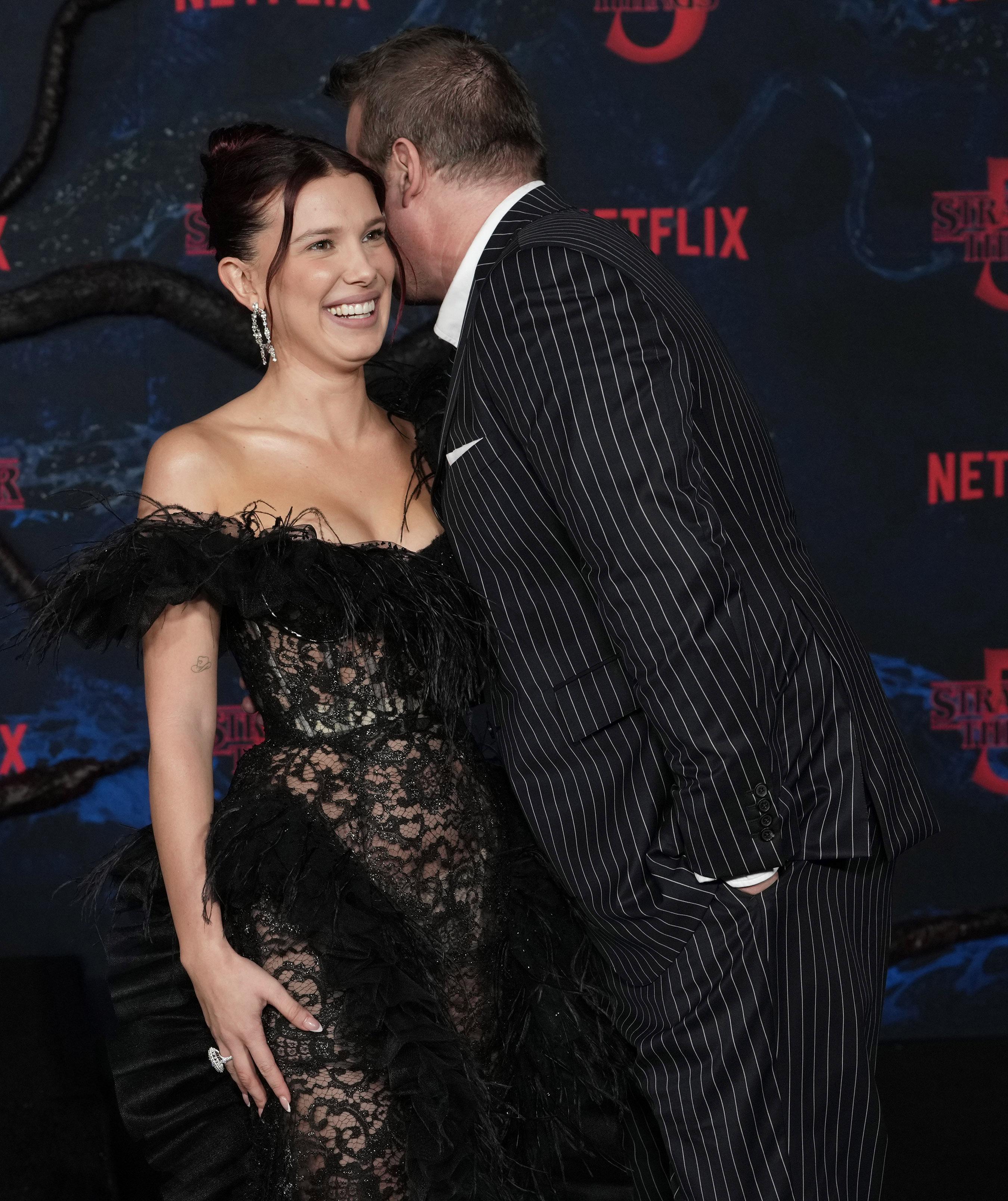 В разговоре с журналистами, которые, разумеется, тут же набросились на тандем отца и дочки с расспросами, Дэвид и вовсе успел сравнить себя с реальным мужем Милли. Точнее, мило пошутить над выбором своей партнерши по сериалу. Дэвид в какой-то момент повернулся к Милли и спросил у нее, такой же ли он красивый, как Джейк Бон Джови. На это Милли Бобби рассмеялась и просто приобняла своего экранного папу.