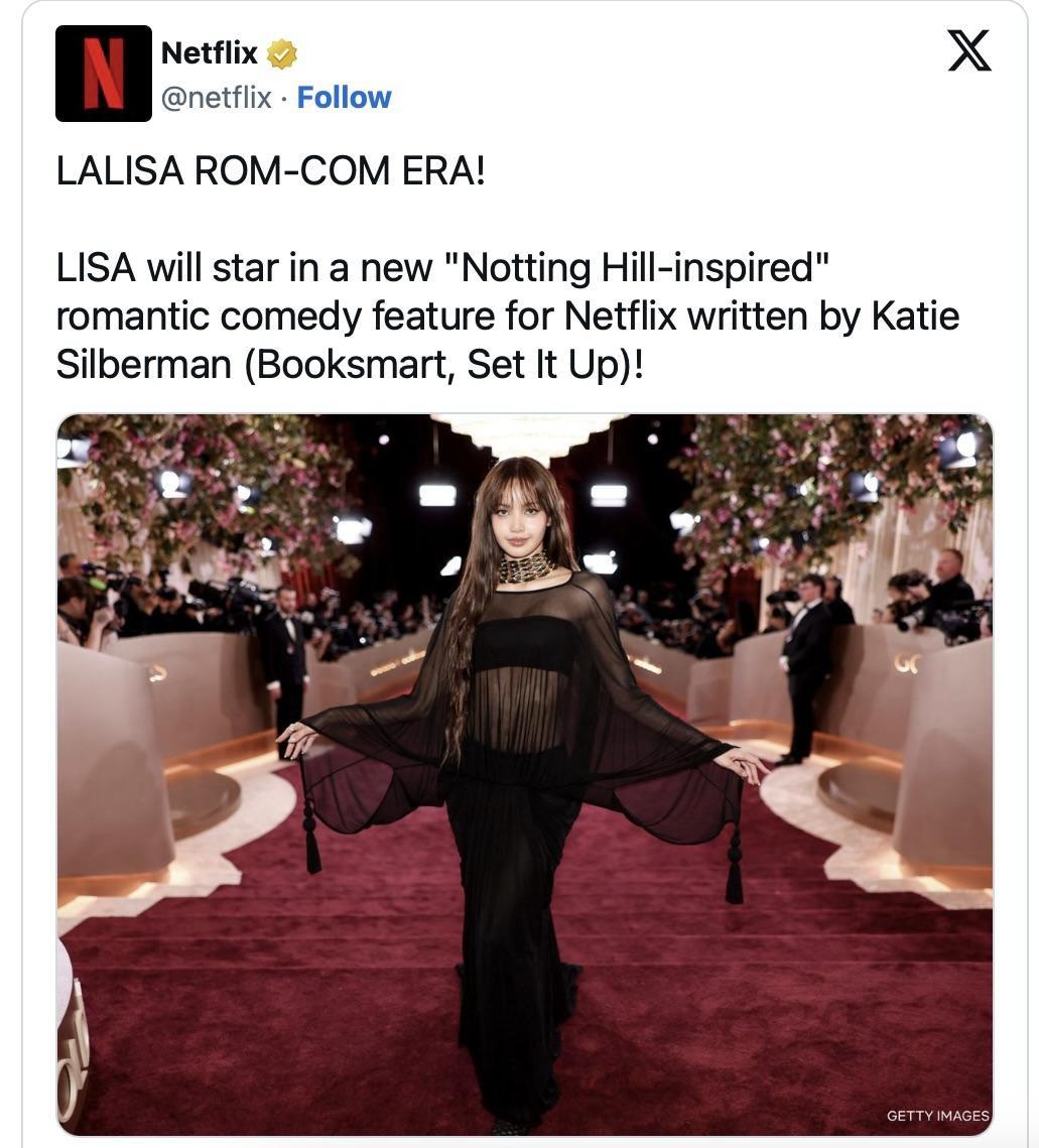 Лиса из BLACKPINK сыграет главную роль в новом ромкоме от Netflix