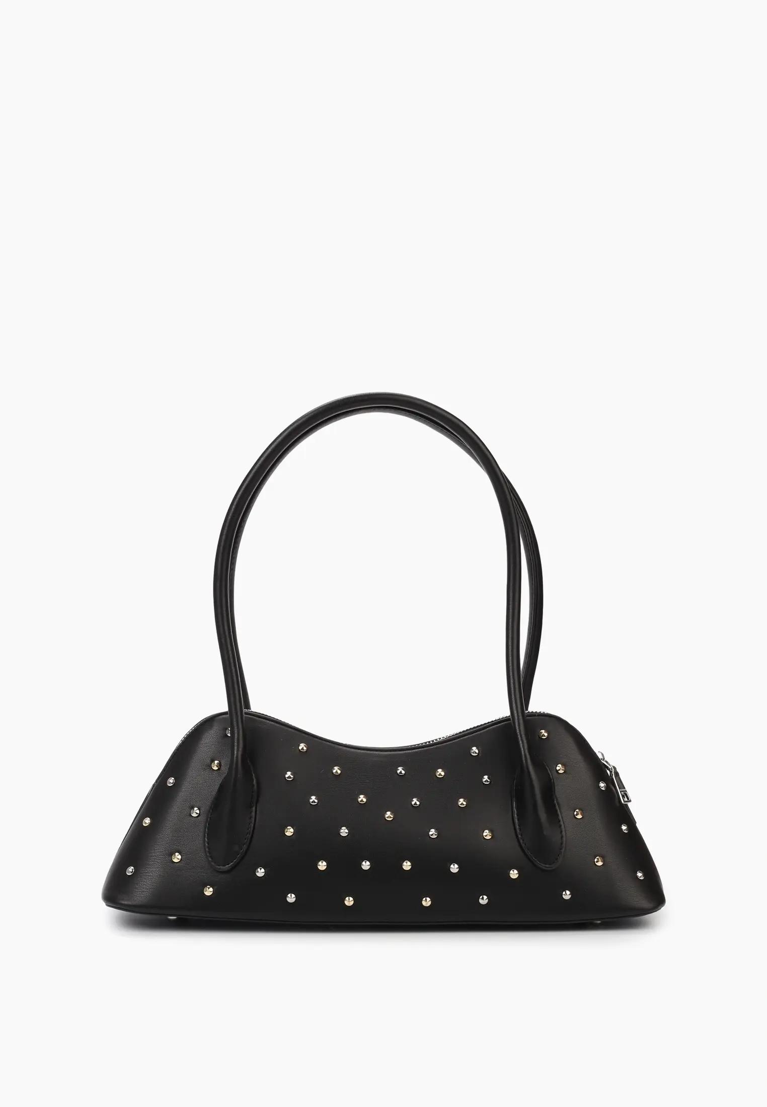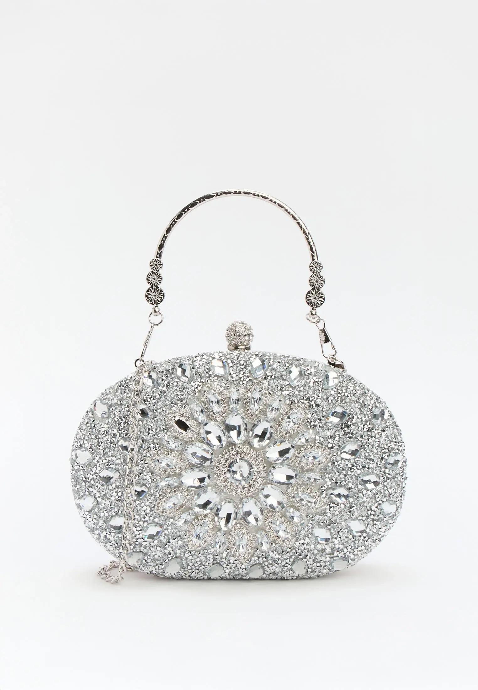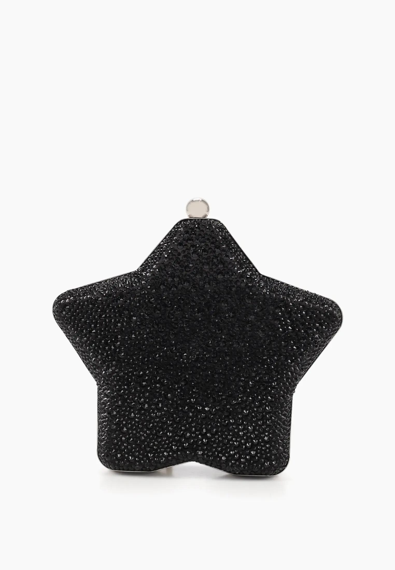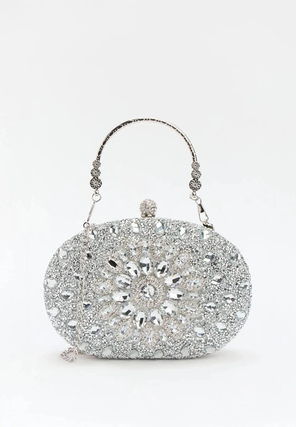 Самый очевидный, но по-прежнему беспроигрышный вариант. Клатч, усыпанный кристаллами или декоративными камнями, не требует поддержки со стороны одежды. Он одинаково хорошо сочетается с маленьким черным платьем, строгим костюмом и даже с минималистичным комбинезоном. Важно, чтобы форма была простой — тогда сумка не будет выглядеть перегруженной.