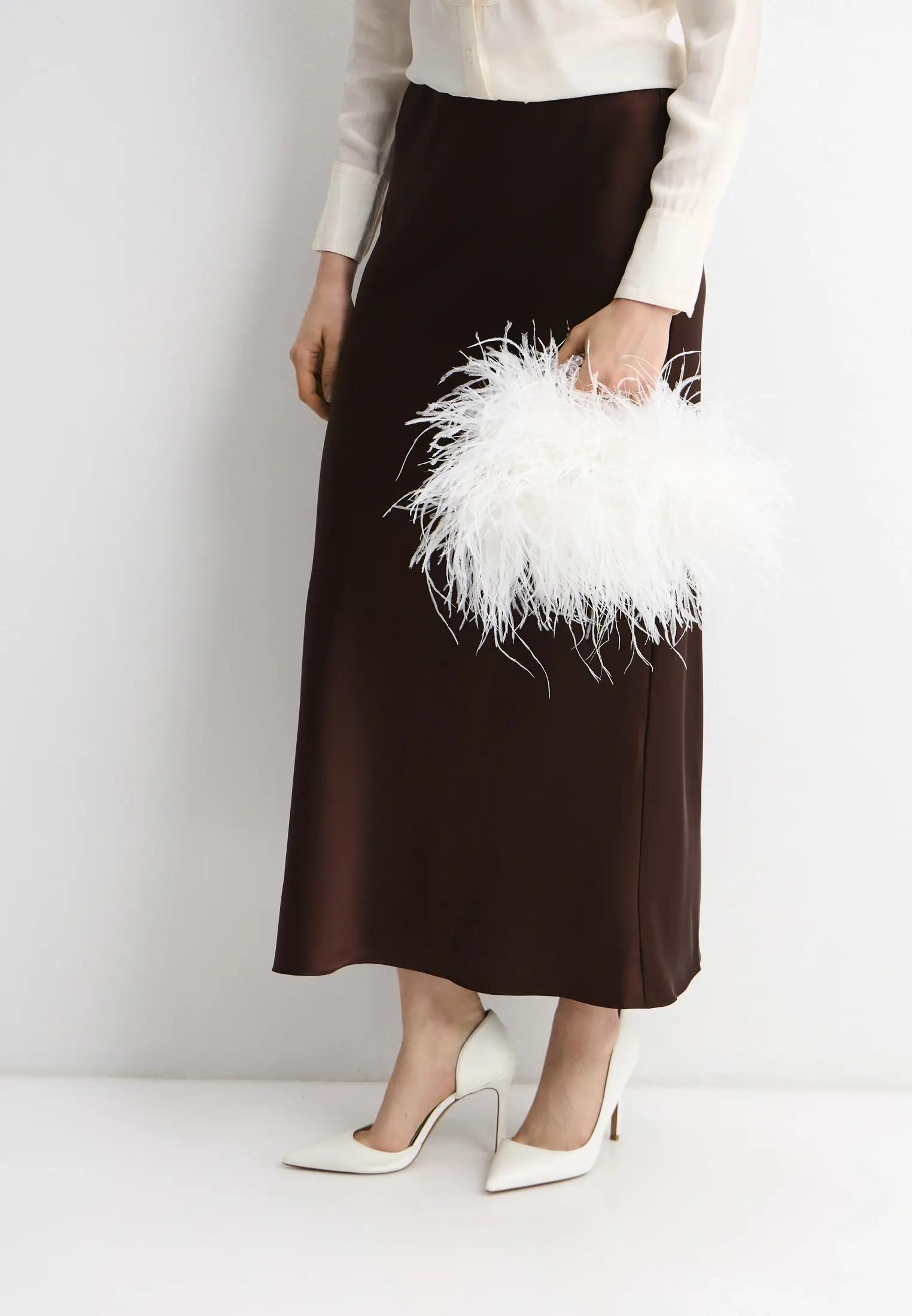 Перья и мех — классика праздничного сезона. Сумка с таким декором сразу создает ощущение вечеринки, даже если ты выбрала минималистичное платье или строгий костюм. Главное правило — пусть декор будет аккуратным, тогда образ не уйдет в театральность.