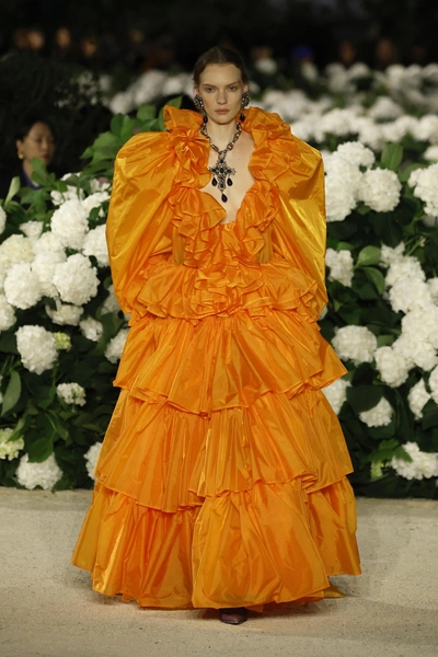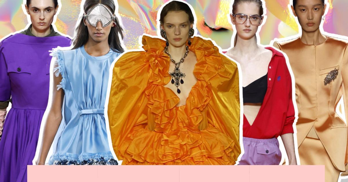 От сочного мандарина до сложных закатных тонов — оранжевый стал настоящей звездой подиумов. Цвет непростой, но эффектный. Если не готова к тотал-луку, начни с сумки или топа.