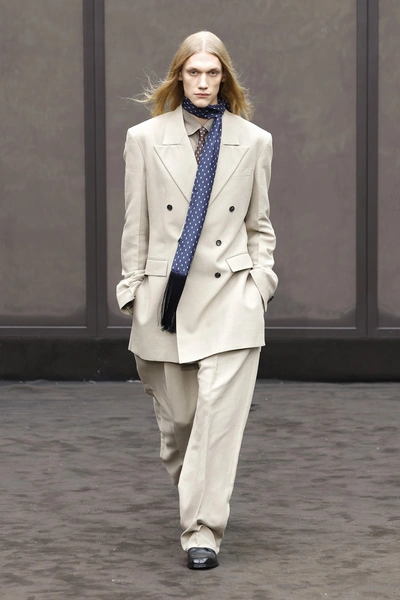 Даже самый обычный классический костюм станет более стильным, если добавить к нему тонкий шарфик. Он придаст образу динамики и оригинальности без лишних усилий.