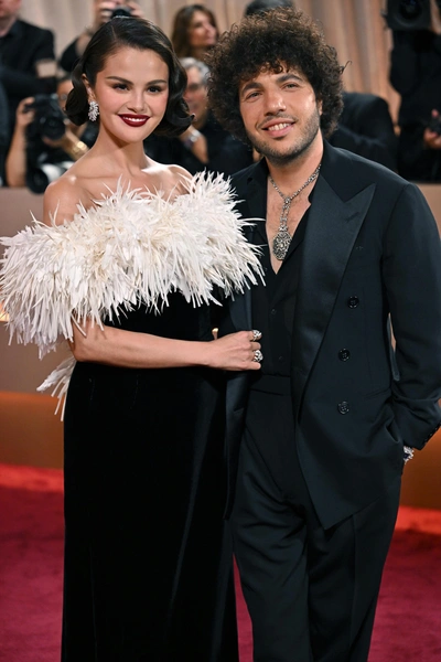 Декоративные перья — один из ключевых трендов будущей весны и лета, и красная дорожка это подтвердила. Селена Гомес появилась в бархатном черном платье Chanel с контрастной отделкой белоснежными перьями по верху. Лаконичный силуэт и трудоемкий декор сделали образ супервыразительным без перегруза.