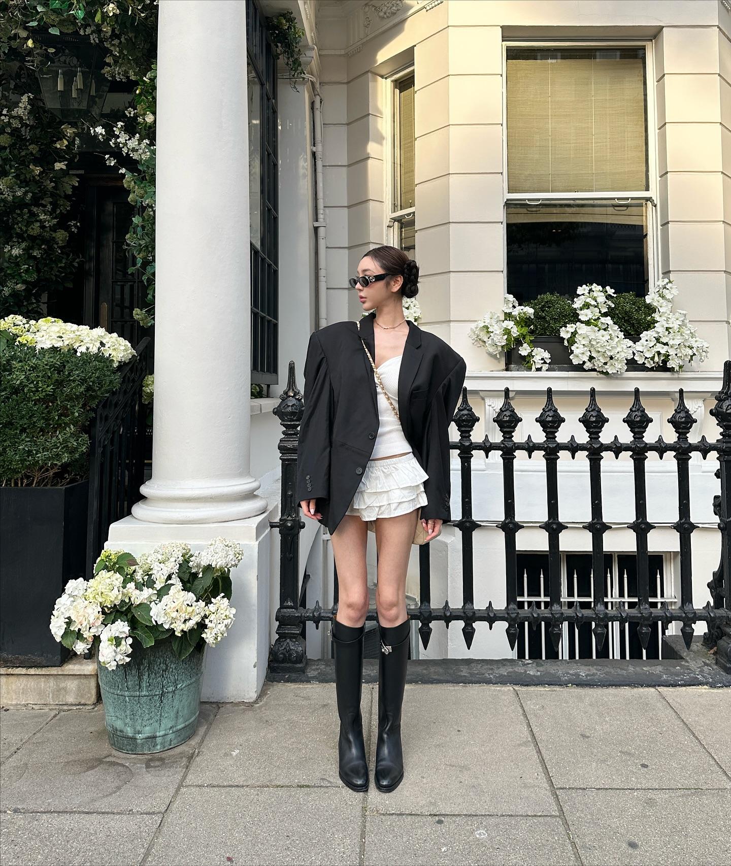 Классическая фишка восточных модников: умение сочетать короткое и объемное. Короткий низ и крупный верх, мини-юбка и высокие сапоги, тонкие ткани и архитектурные силуэты. В этой игре все строится на балансе — между хрупкостью и уверенностью, между открытостью и защитой. Особенно эффектно выглядит комбинация: мини и сапоги до колена, дополненные широким жакетом или пальто «с мужского плеча».