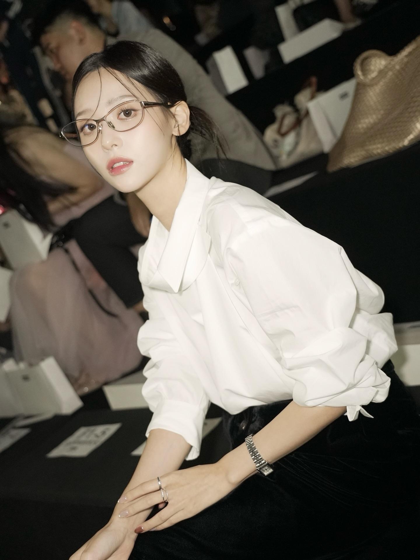 Главный контрапункт шумной уличной моде — чистота линий и академическая аккуратность. Белые рубашки оверсайз, тщательно заправленные в черный низ, будто подчеркивают внутреннюю собранность и спокойствие. Волосы — в низкий, слегка небрежный пучок, очки — с прозрачными стеклами, как бы для зрения, маникюр — нейтральный. Минимум украшений, максимум чистоты. Простота здесь не значит скука — наоборот, это та сдержанность, в которой чувствуется вкус и уверенность.