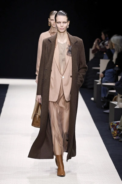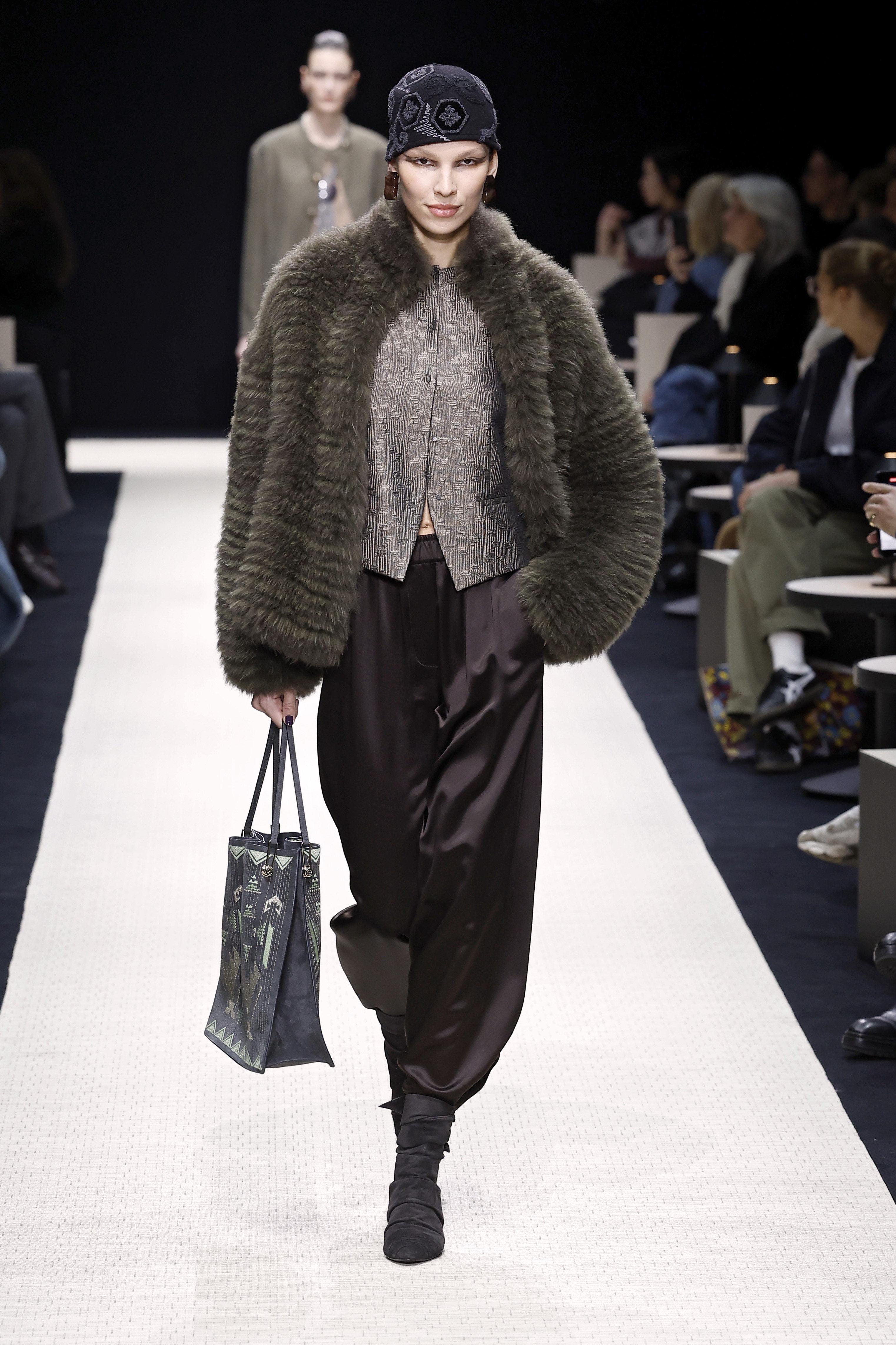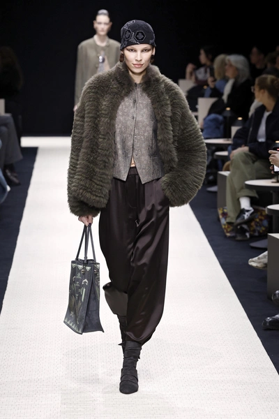 В этом сезоне продолжается ажиотаж вокруг шуб 🔥 Вот только есть один нюанс: чтобы аутфит выглядел стильно, важно правильно подобрать остальные элементы гардероба. Хоть шуба сама по себе и довольно акцентная вещь, все же не бойся добавлять к ней не менее эффектные детали, например, необычный головной убор! Особенно роскошно и элегантно будут выглядеть шелковые брюки. А если ты возьмешь пример с Giorgio Armani и будешь использовать низ шоколадного оттенка, то получишь максимально актуальный образ на эту зиму ❤️🔥