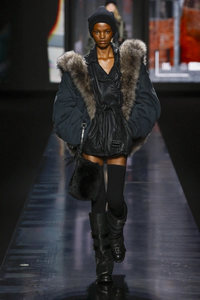 Все, что связано с мехом, сегодня по-прежнему не теряет своей актуальности, так что вооружайся верхней одеждой с меховыми вставками, различными горжетками и пушистыми накидками 🔥 Использование меховой куртки в образе станет прекрасным решением, когда шубы уже успели приесться, но и совсем отказываться от тренда не хочется! Дополни ее высокими сапогами и гетрами или леггинсами в цвет обуви — подиумный лук готов ✨