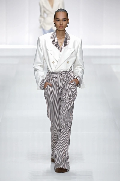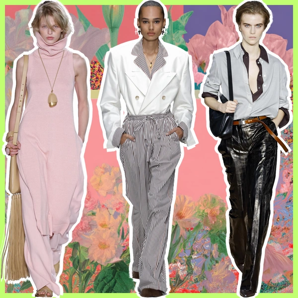 Пижамные комплекты окончательно вышли за пределы дома. В сезоне весна-лето 2026 брюки для сна сочетают с классическими блейзерами, заправленными внутрь. Да, именно заправленными, как несколько сезонов назад мы видели у Prada. Такой прием подчеркивает талию и делает образ оригинальным и собранным. Зимой выбирай плотные ткани и добавляй водолазку или тонкий свитер под блейзер.