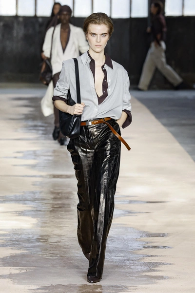 Безудержная многослойность продолжает возглавлять модные тренды. Один из самых интересных приемов — носить две рубашки сразу, заправив их в кожаные брюки. Можно экспериментировать с объемом, оттенками и плотностью ткани. Образ выглядит стильно и дерзко, а зимой он еще и очень практичен.