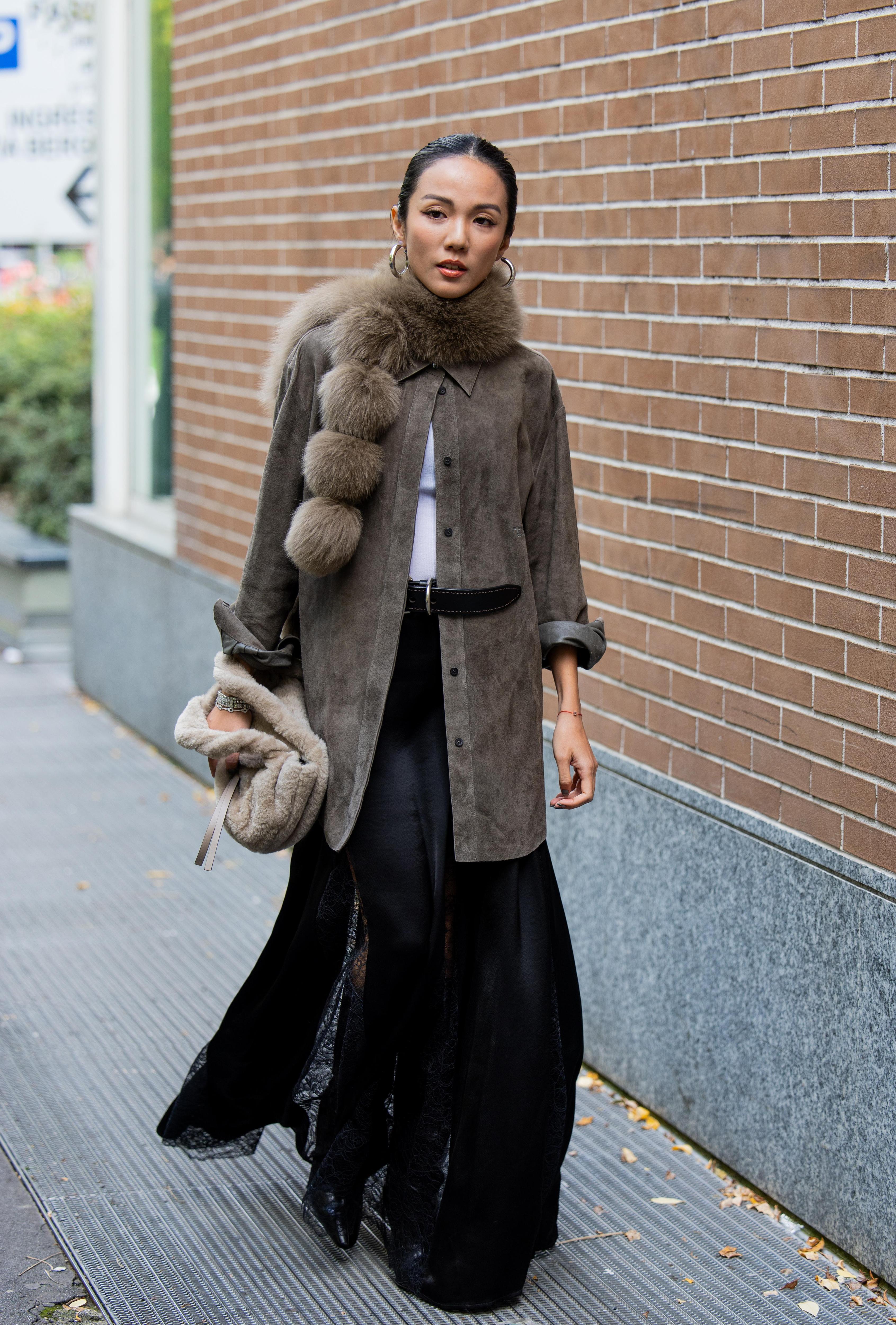 Кто сказал, что шарф — это просто функциональный аксессуар? Милан показал меховые варианты в духе ретро, которые выглядят скорее как арт-объект. Объемные, с помпонами, они становятся главным украшением образа. Носить их можно как поверх строгого пальто, так и с вечерним нарядом — и именно за счет контраста меховой шарф придает нужную толику иронии и театральности.