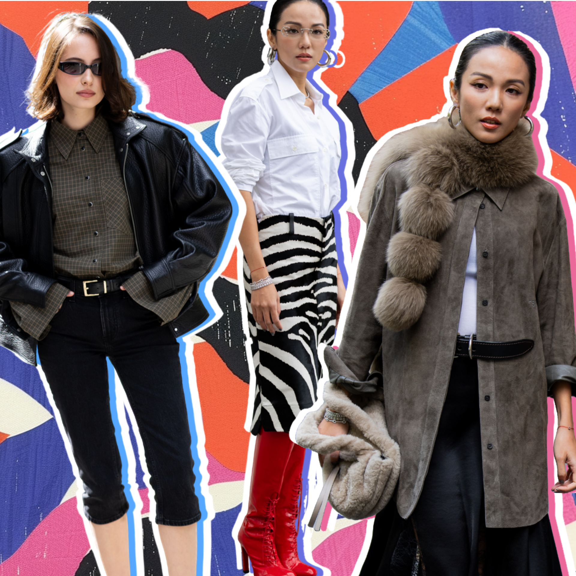 Пока леопард снова и снова мелькает в коллекциях, зебра выходит вперед — четкий, контрастный и очень заметный рисунок. В Милане его носили с белыми рубашками и яркими акцентами вроде красных сапог.