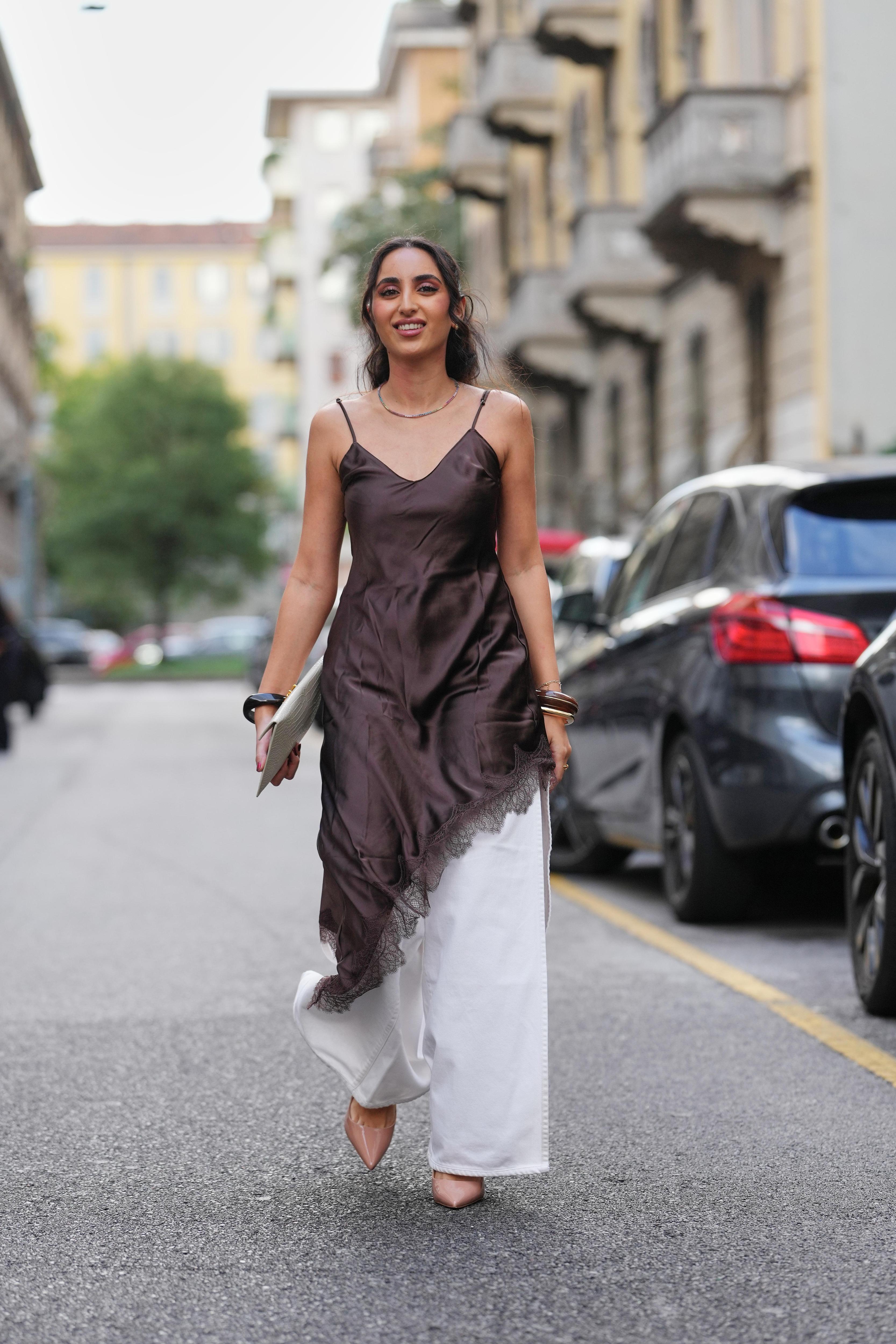 В Милане этот тренд выглядел особенно изысканно: асимметричные платья в стиле нижнего белья из тончайших тканей сочетали с плотными прямыми брюками, создавая эффект игры фактур и пропорций. Такой дуэт идеально подойдет тем, кто хочет выйти за рамки привычных формул и добавить в свой гардероб элемент неожиданности.