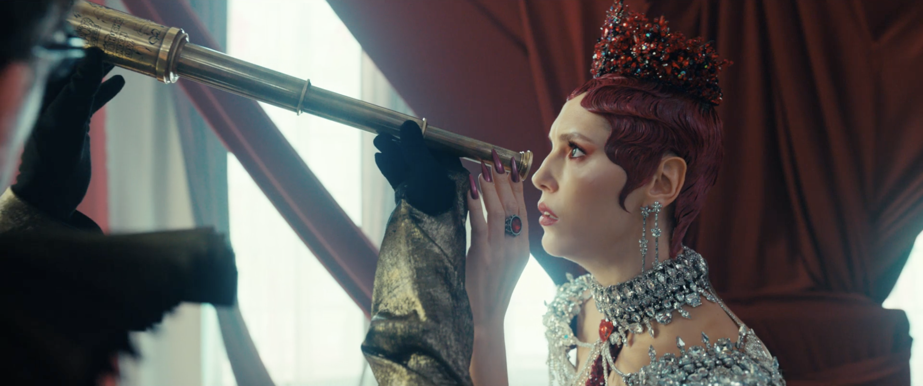 Каждый герой новой экранизации «Алисы в Стране Чудес» стал воплощением актуальных модных тенденций, переосмысленных через призму волшебства. Здесь нет случайных деталей: будь то розовое платье Алисы, бархатный сюртук Шляпника, тотал-блэк Герцогини или бордовое платье, утопающее в кристаллах, у Королевы — все работает на создание сказочной атмосферы, где стиль становится частью истории.