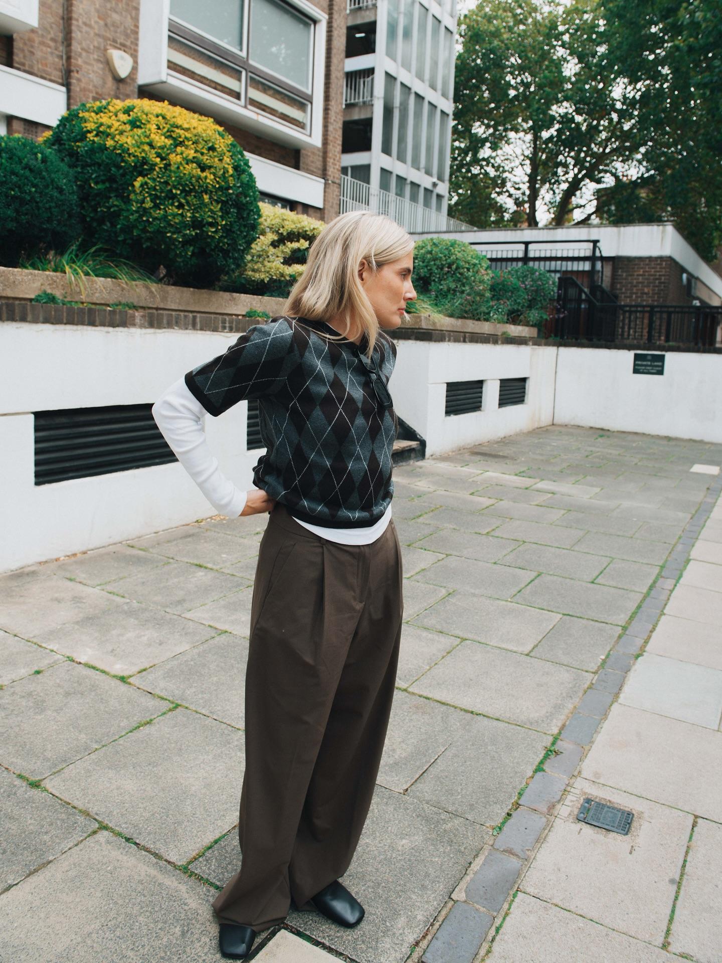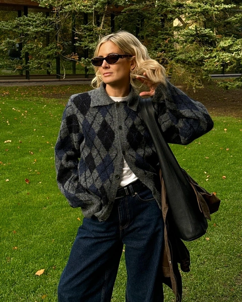 Аргайл сам по себе довольно выразительный, поэтому лучше всего он работает с простыми, чистыми вещами: однотонными юбками, джинсами, классическими брюками, рубашками и базовыми пальто. Но если тебе близок принцип «чем смелее, тем лучше» — этот узор тоже выдержит игру с контрастами. Вот что точно стоит добавить в гардероб этой зимой: