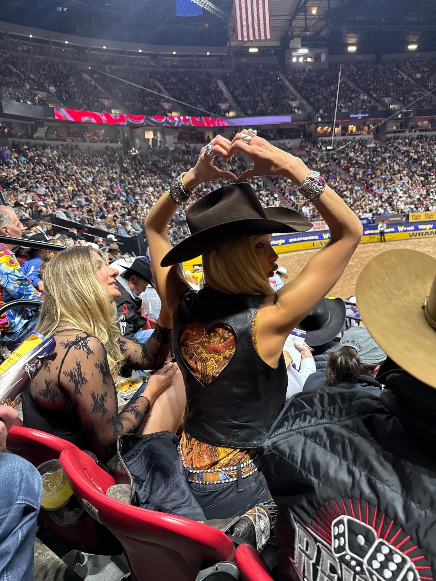 Белла Хадид уверенно возвращает ковбойский стиль в центр модного внимания — и делает это не с подиума, а прямо с трибун родео 😁 В последние дни модель проводит время в Лас-Вегасе, поддерживая своего бойфренда, профессионального ковбоя Адана Бануэлоса, на Национальном финале родео. И если кто-то все еще считает вестерн эстетикой исключительно «для костюмированных выходов», Белла быстро развеивает эти сомнения 😎