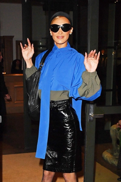 Для дневного выхода в Нью-Йорке Хадид выбрала блузку насыщенного кобальтово-синего оттенка — цвета, который все чаще называют главным претендентом на статус фаворита 2026 года. Этот тон уверенно заявил о себе на показах весна-лето 2026: от вытянутых платьев Tom Ford до строгих пальто с воротником-стойкой у Victoria Beckham.