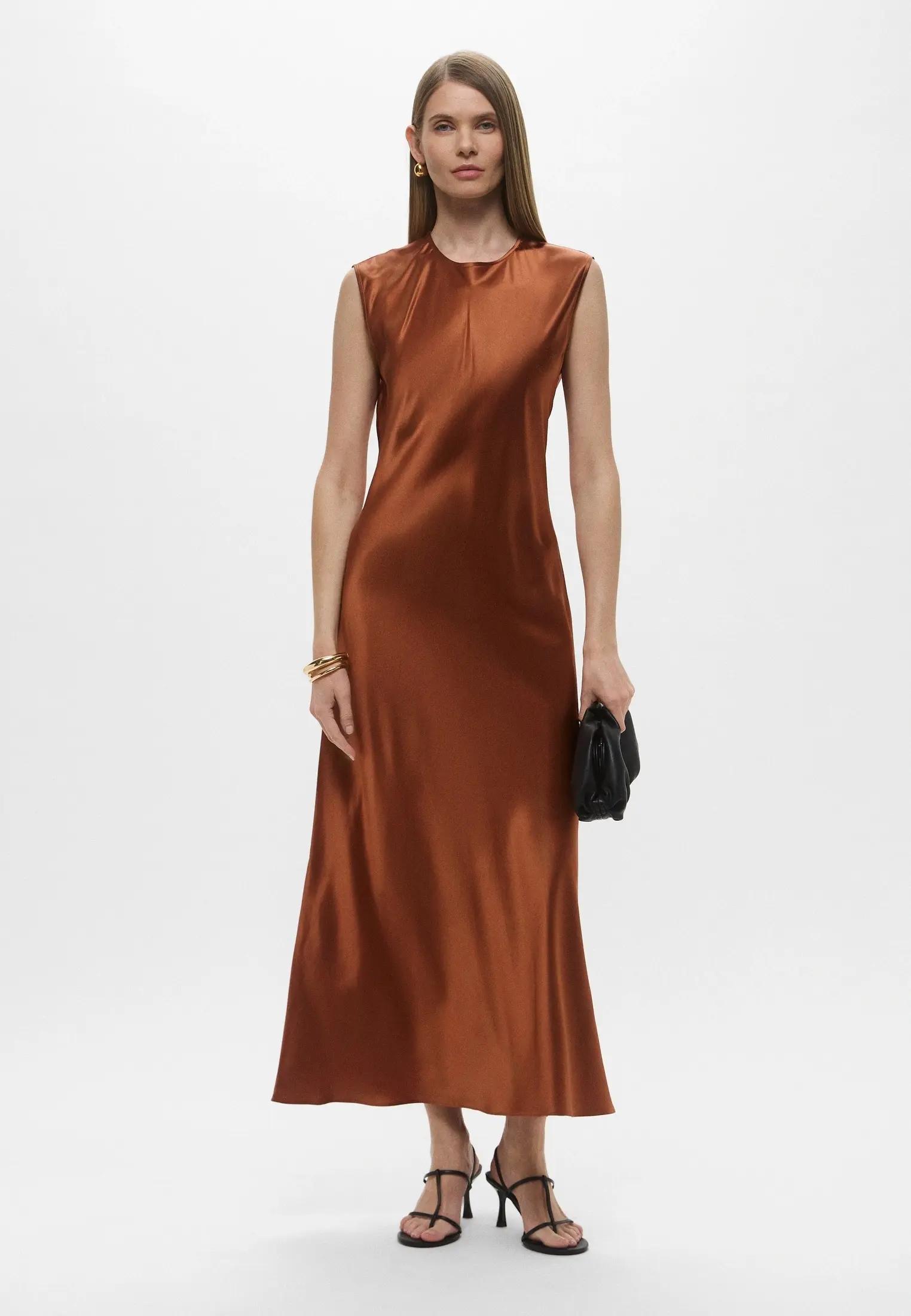 Теплый металл, классический оттенок процветания. Он усиливает энергетику богатства и помогает удерживать достигнутое. Подойдет как для полноценного наряда, так и для небольших акцентов — обуви, украшений или деталей.