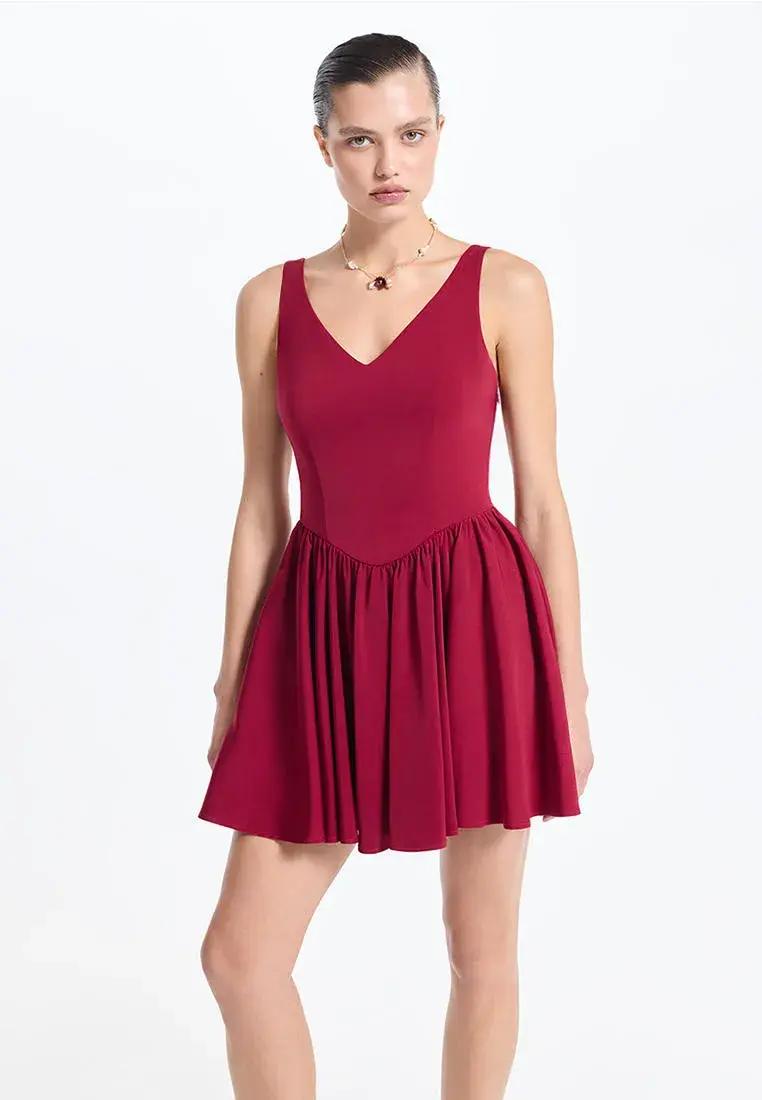Оттенок бордо играет в этом образе особую роль. Для Нового 2026 года он практически идеален: в год Огненной Лошади особенно удачными считаются насыщенные теплые цвета — красный, винный, алый, гранатовый. Их легко вписать в вечерний образ, и они привносят ощущение силы и энергии, не переходя в избыточный блеск. В отличие от ярко-красного, бордо выглядит более глубоким и благородным, поэтому подходит тем, кто хочет сделать праздничный наряд выразительным, но не слишком кричащим.