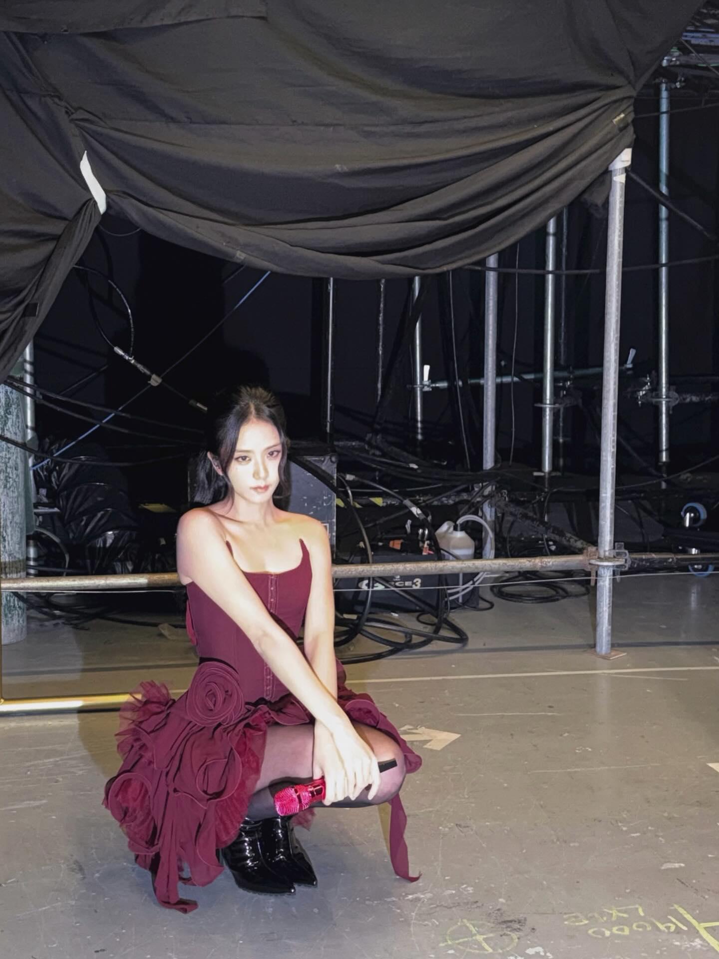 Бордо все увереннее занимает место одного из главных праздничных оттенков наступающего сезона, и свежие снимки Джису лишь укрепляют эту тенденцию. Певица поделилась фотографиями с недавнего концерта в Булакане, Филиппины, где она выступала в рамках тура BLACKPINK «DEADLINE».
