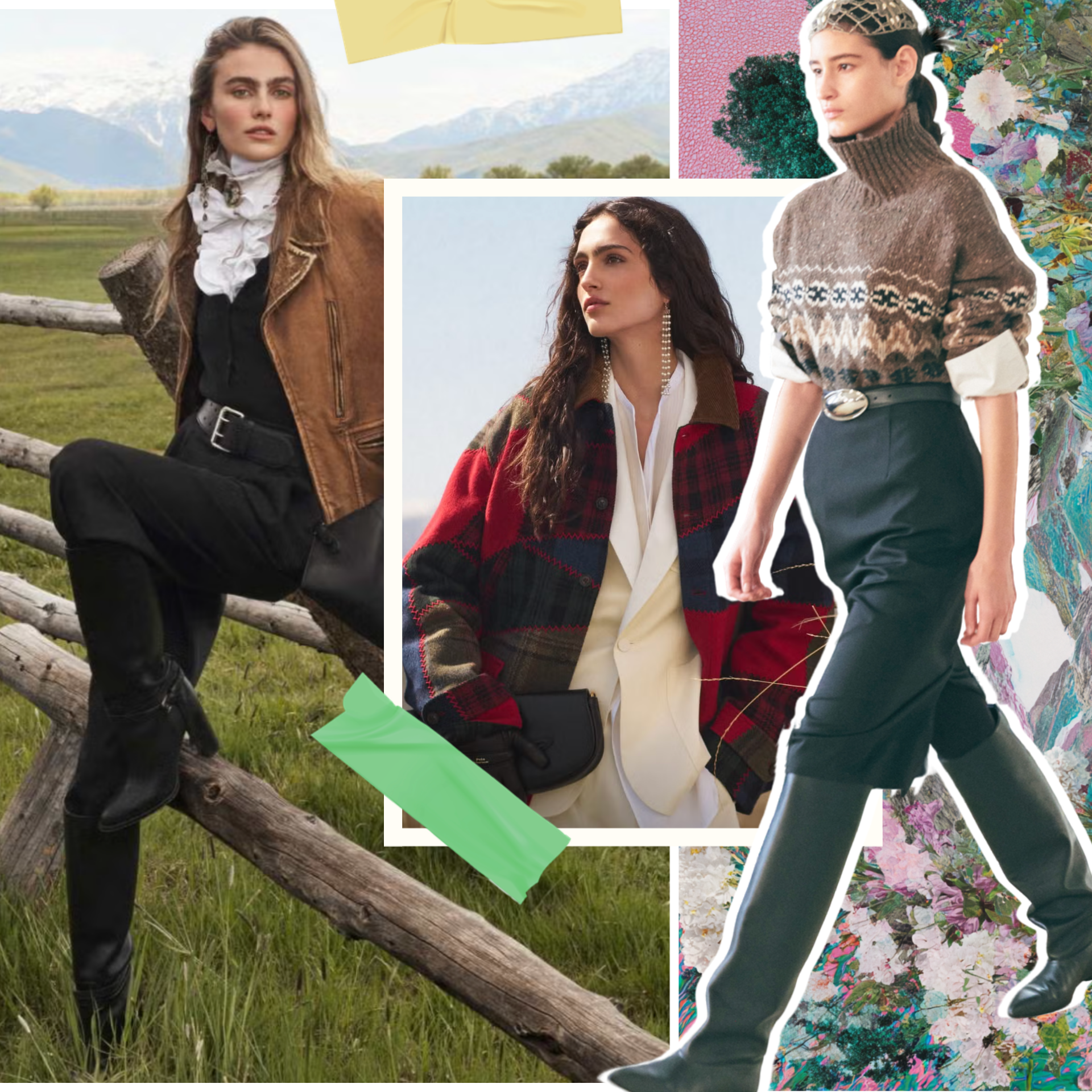 Неудивительно, что в этом сезоне именно британские дизайнеры стали законодателями «сельского» шика. Дэниел Ли, например, посвятил коллекцию Burberry осень-зима 2025/26 размышлениям о британской идентичности. Прогуливаясь по Йоркширу, он нашел идеи для показа, где модели выглядели так, будто вышли из старинных поместий. В коллекции можно увидеть шерстяные пальто с шарфами в клетку, плащи и куртки, а также брюки, заправленные в высокие кожаные сапоги.