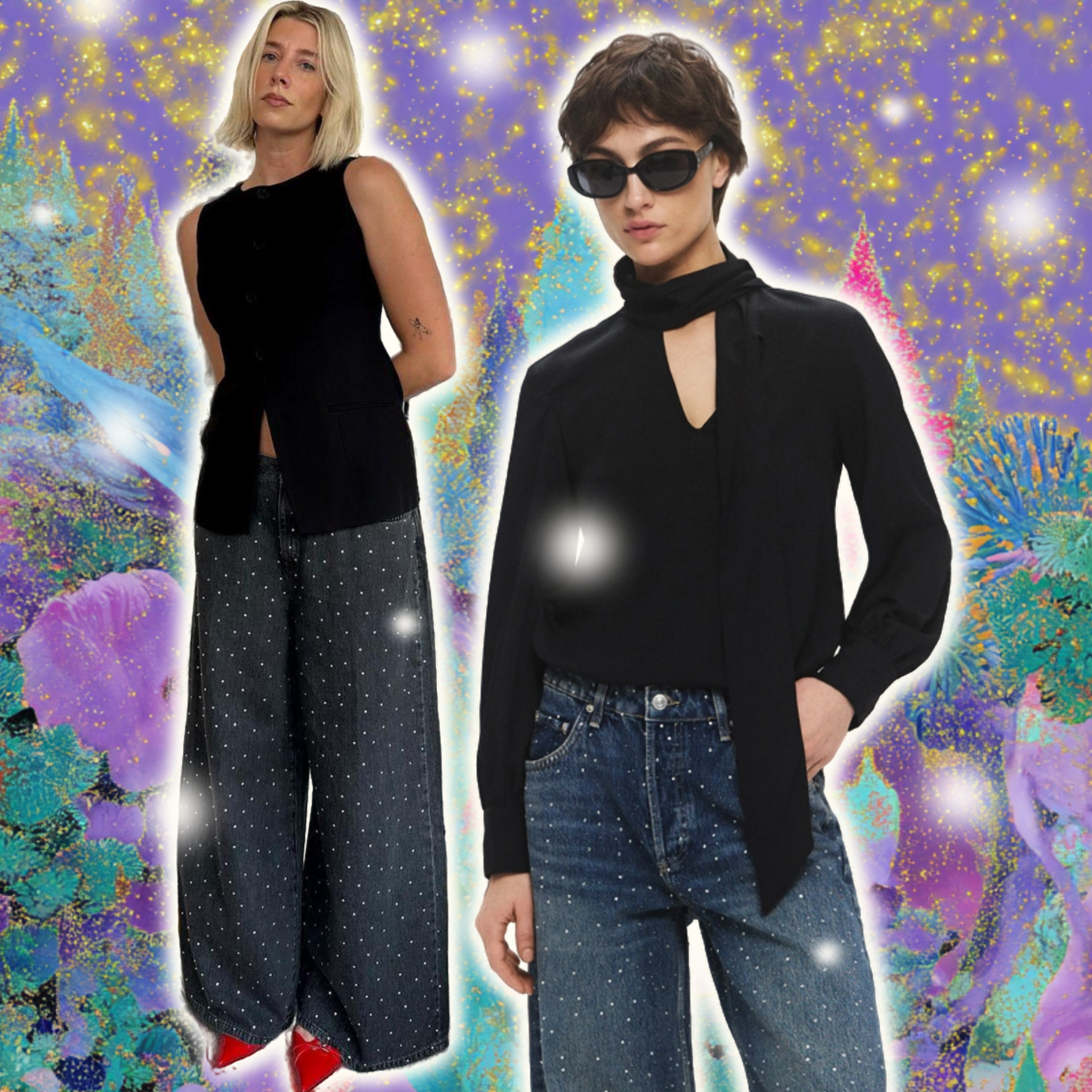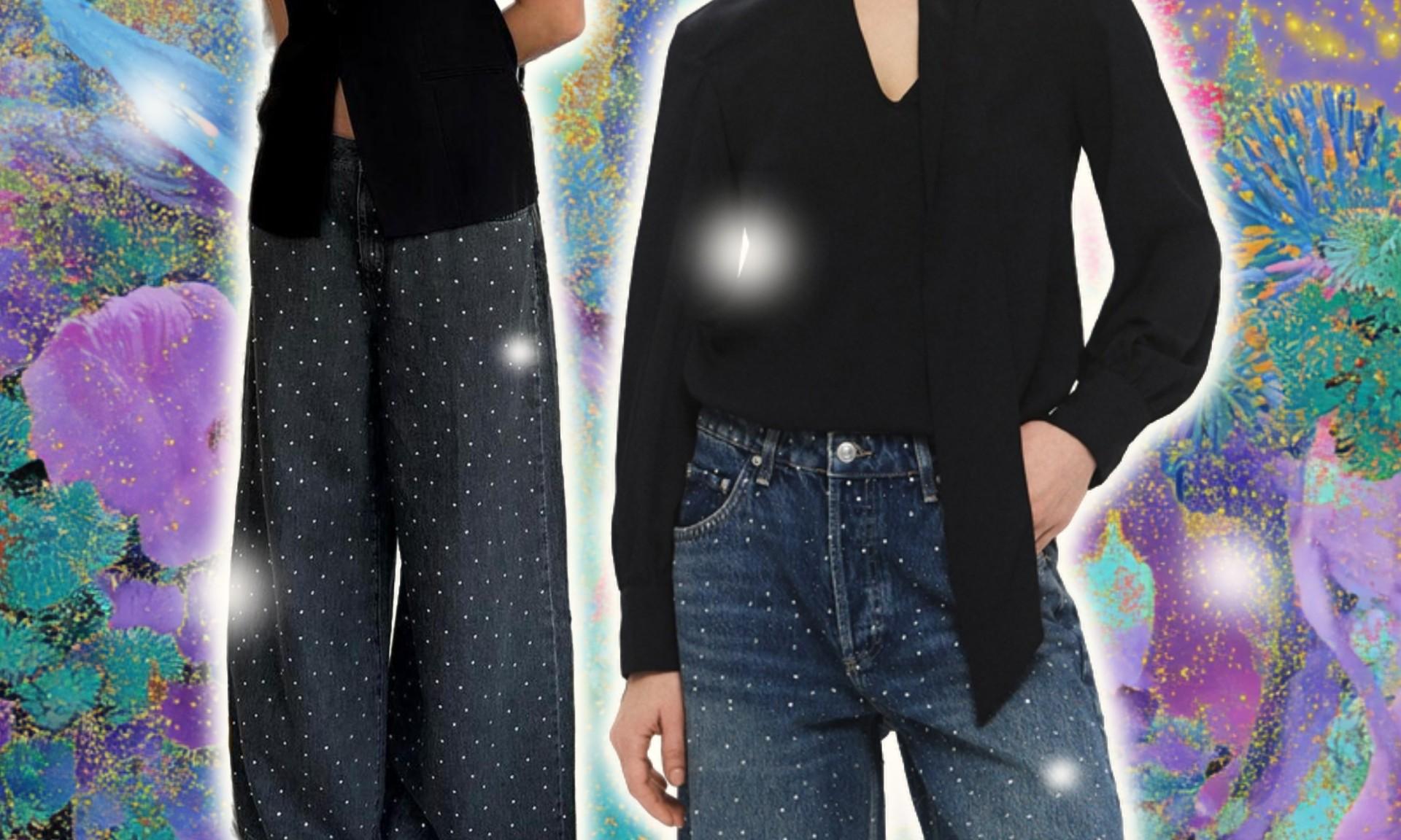 Зима — идеальный сезон для блеска, и в этом году он выходит далеко за рамки вечерних платьев. Стразы, жемчуг, металлические клепки и сияющая вышивка добрались до самых обычных джинсов и брюк, превращая привычные модели в яркие праздничные акценты. И самое приятное — носить такие вещи можно не только в новогоднюю ночь, но и весь сезон, не жертвуя комфортом ради торжественного дресс-кода.