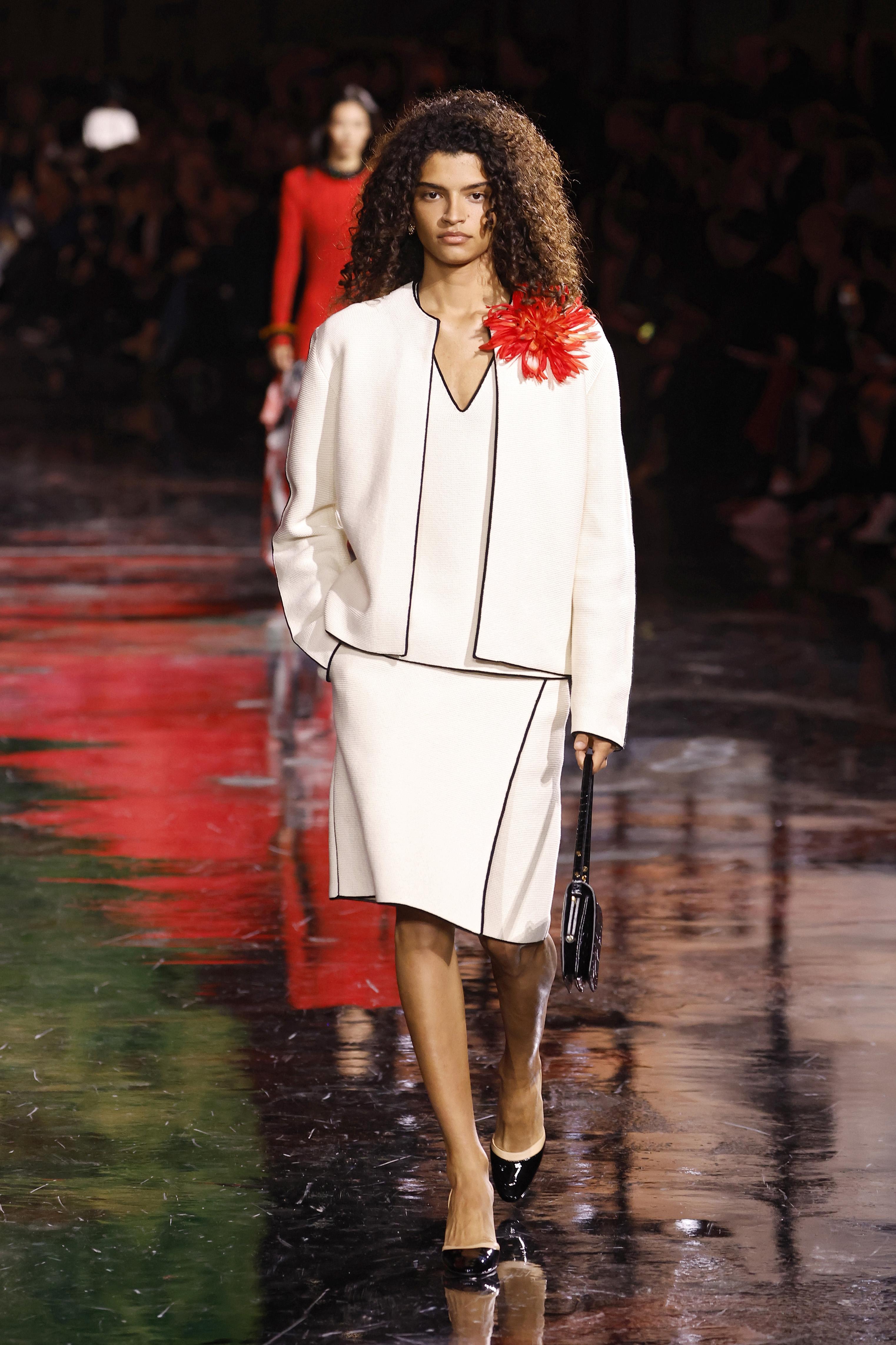 Особого внимания заслуживают броши, особенно в виде пышных тканевых цветов. Взгляни на образ из коллекции Chanel: молочный строгий костюм с черным кантом и крупная брошь в виде красного соцветия астры на жакете — смотрится невероятно красиво и свежо. Брошь можно носить не только на жакете, но и на пальто, на вороте рубашки, на сумке — чем неожиданнее место, тем интереснее результат!