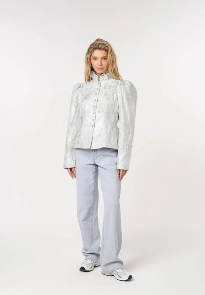 Если ты только начинаешь знакомство с этой тканью, нарядная жаккардовая блузка — идеальный вариант. Она сама по себе становится акцентом, поэтому низ лучше выбрать спокойный: однотонные брюки, юбку простого кроя или даже базовые джинсы. Такой прием позволяет носить жаккард не только по праздникам, но и в обычные дни.