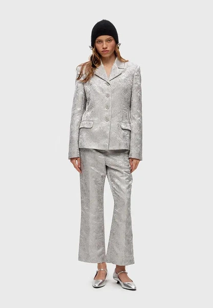 Для тех, кто любит выразительные образы, жаккардовый костюм — отличное решение. Он выглядит цельно и самодостаточно, поэтому не требует сложных аксессуаров. Важно, чтобы крой был лаконичным, без лишнего декора. Тогда костюм не уйдет в театральность и будет смотреться актуально.