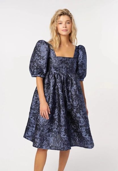 Жаккардовые платья выглядят интереснее привычных гладких вариантов именно за счет фактуры. Даже простой фасон в такой ткани смотрится нарядно и продуманно. Это хороший выбор, если хочется выглядеть эффектно, но без обилия украшений и сложных деталей.