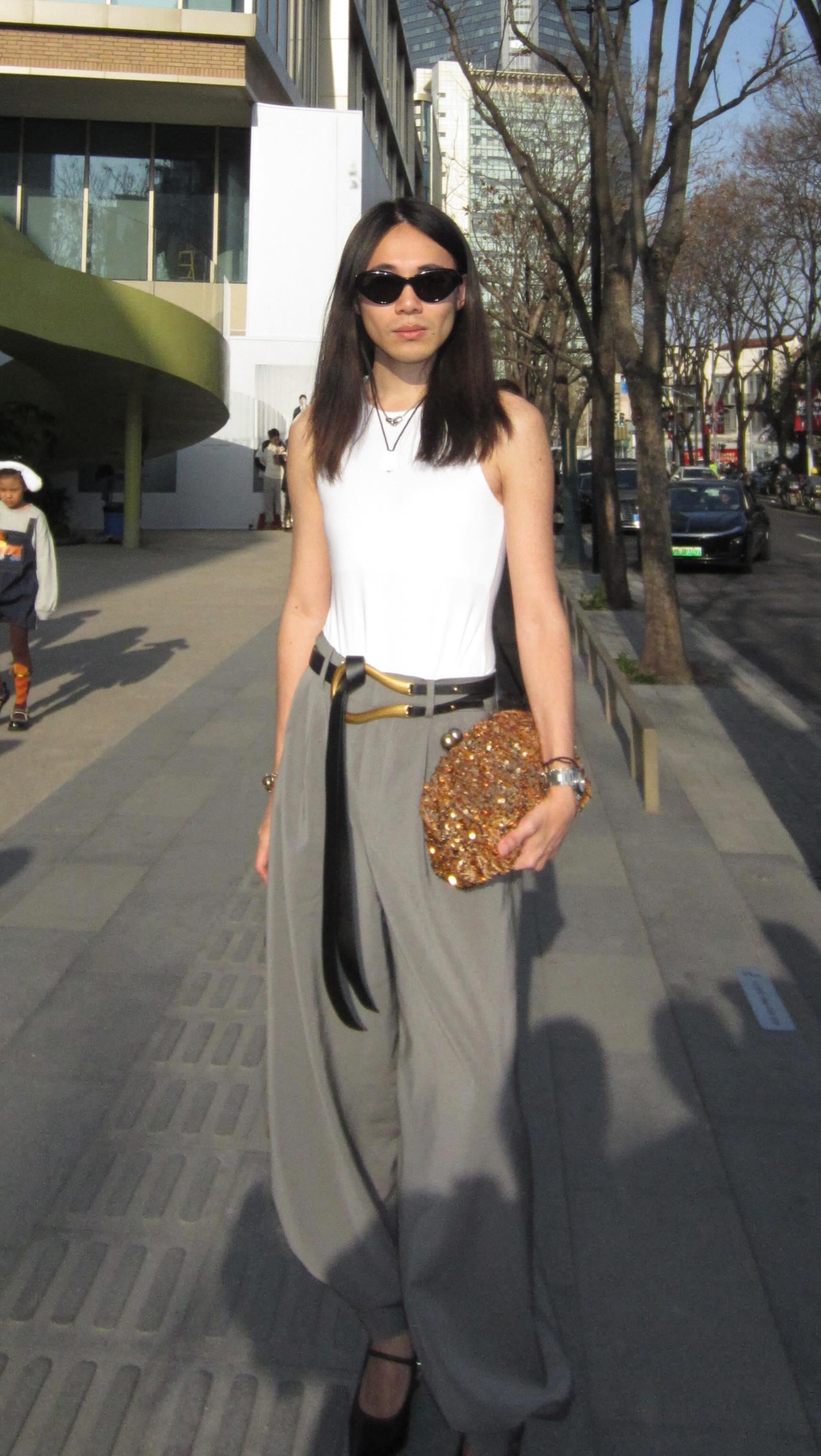 Иногда, чтобы образ заиграл по-новому, достаточно одной детали. На шанхайских улицах этой весной такой акцентной деталью стал ремень. Но не обычный, лаконичный, а тот, который невозможно не заметить: в виде жгута с длинными свисающими концами, с массивной пряжкой необычной формы или контрастного цвета. Сам лук при этом может быть предельно простым — брюки, майка или футболка, лоферы или балетки. Ремень берет на себя всю ответственность за стиль. Для пущего эффекта можно добавить акцентную сумку — тогда образ точно не останется незамеченным.
