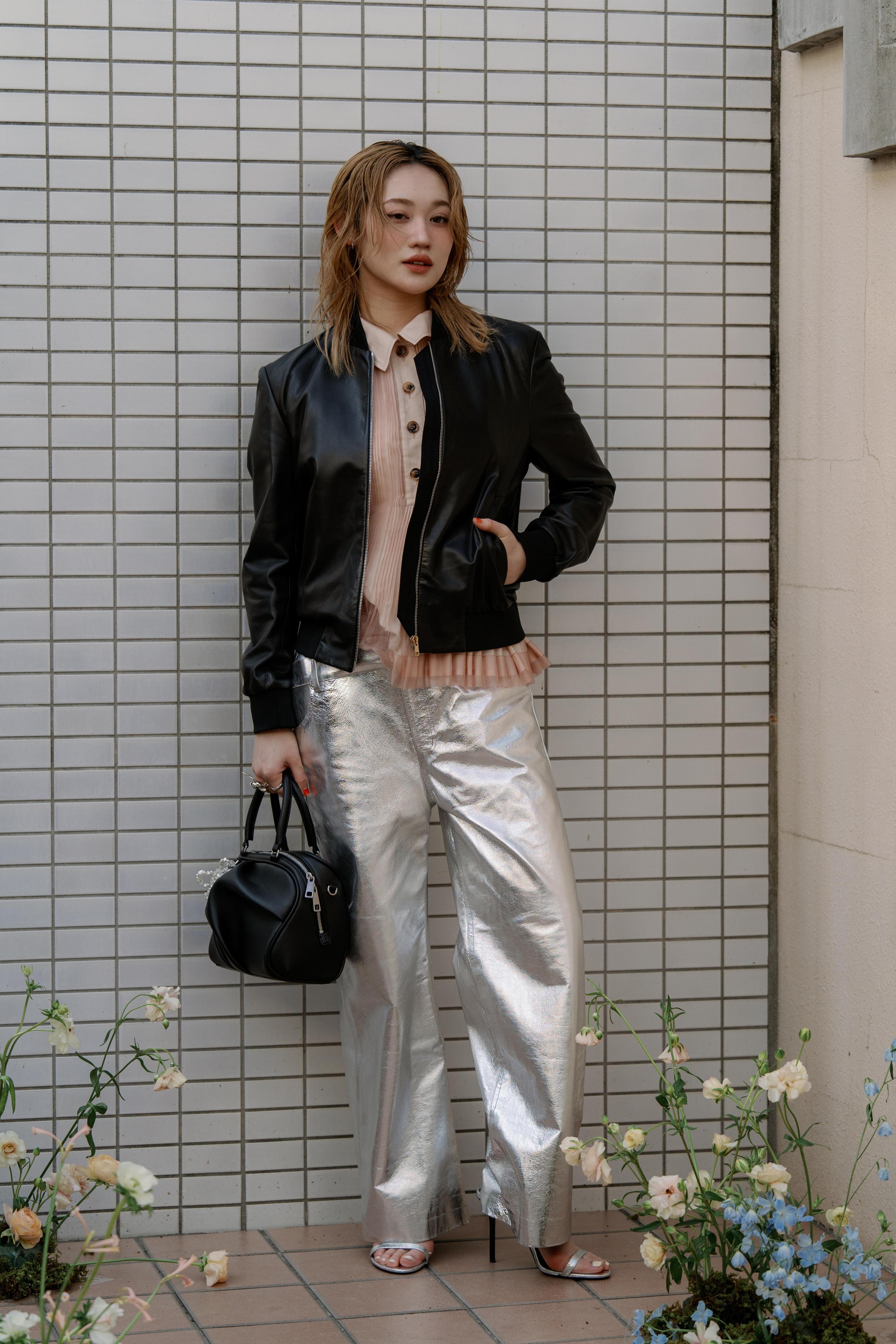 И наконец, то, без чего не обходится ни одна уличная подборка последних лет, — металлик. Но в Токио есть важная деталь: в фаворитах именно серебро, а не золото. Серебристые джинсы, куртки, сумки — все это мелькало в стритстайл-луках. Особенно стильно выглядит сочетание ретро-металлика с максимально лаконичными и современными вещами — бери на вооружение этот прием! ✨