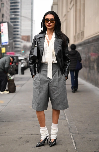 Лаконичные теплые вязаные гетры в в Нью-Йорке носили самым актуальным способом — вместе с туфлями. Причем гетры специально сбугривали на щиколотке, создавая дополнительный объем и выставляя этот аксессуар напоказ. Их сочетали с юбками разной длины и с бермудами, доказывая, что гетры — это не просто способ согреться, а полноценный стилистический прием.
