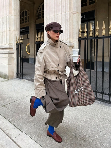 Носки сегодня решают больше, чем кажется на первый взгляд. Это могут быть тонкие хлопковые модели контрастного цвета, выглядывающие из ботинок, или же плотные белые носки в паре с туфлями или лоферами и юбкой. Особенно любимый ход у модниц — выбрать носки броского цвета или с неожиданным принтом, когда весь остальной образ собран в спокойной гамме.