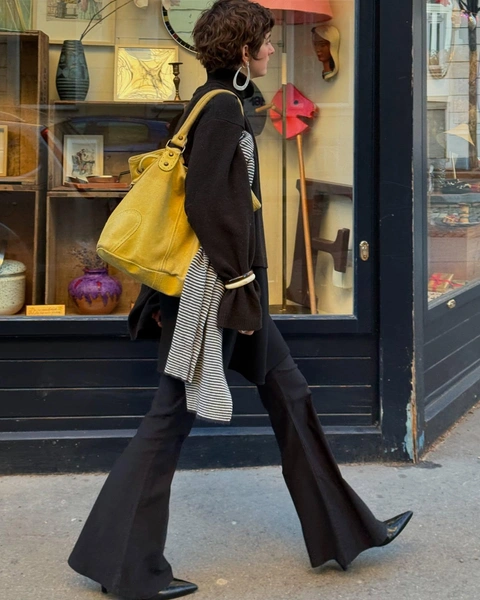 Седьмой прием, казалось бы, очевидный, но на деле мало кто им пользуется. Речь о необычной сумочке — и здесь главное не столько цвет, сколько форма. Вместо привычных прямоугольных или квадратных моделей обрати внимание на сумочки-кисеты, которые затягиваются шнурком, или на фермуары — жесткие модели с металлическим зажимом-рамкой. Они мгновенно придают образу расслабленного шика и толику винтажного настроения