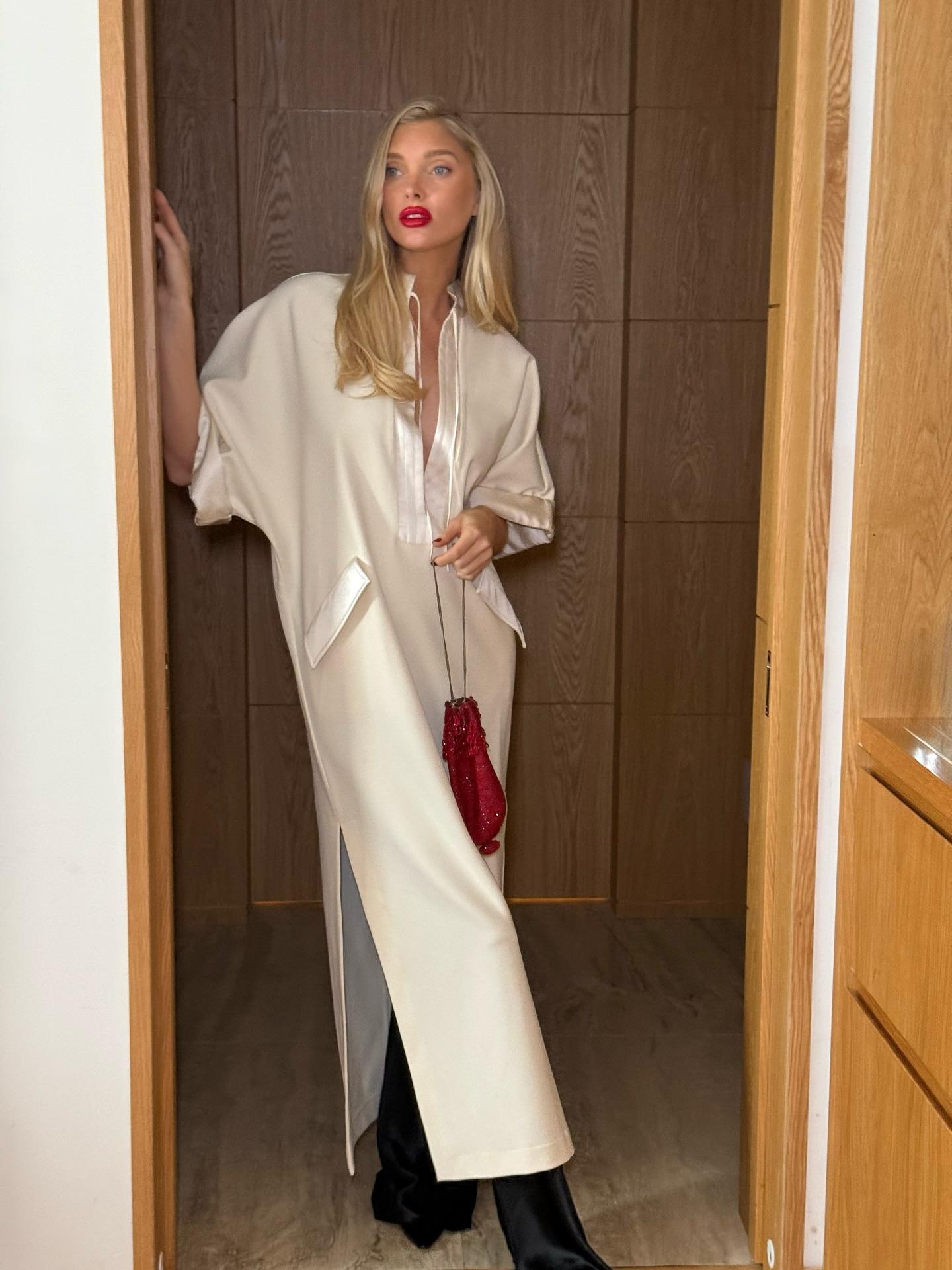 Этот прием для тех, кто соскучился по мини и не боится экспериментов. Вместо привычных колготок в теплые весенние дни фэшн-инфлюенсеры все чаще выбирают чулки. Эльза Хоск, например, давно использует этот трюк: юбка мини или укороченное платье плюс чулки, которые оставляют небольшой участок ноги открытым. Это смотрится более остро, менее «офисно» и добавляет образу женственности без налета старомодности.