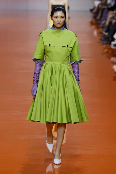 Да, Pantone объявил главным цветом 2026 года спокойный, почти невесомый оттенок белого под названием Cloud Dancer. Он логичен, универсален и легко вписывается в любой гардероб. Но если взглянуть на подиумы сезона весна-лето 2026, то можно заметить, что дизайнеры мыслят куда смелее. Вместо приглушенной нейтральности — насыщенные, сочные, живые цвета, которые работают на эмоцию и настроение.