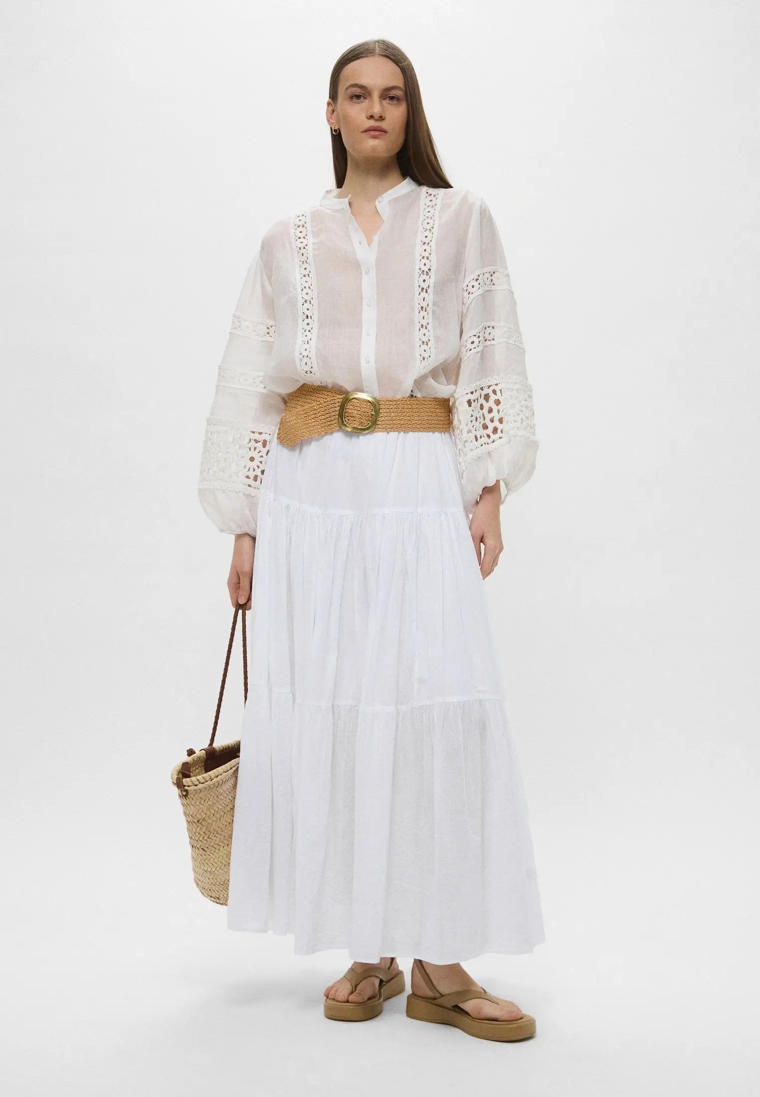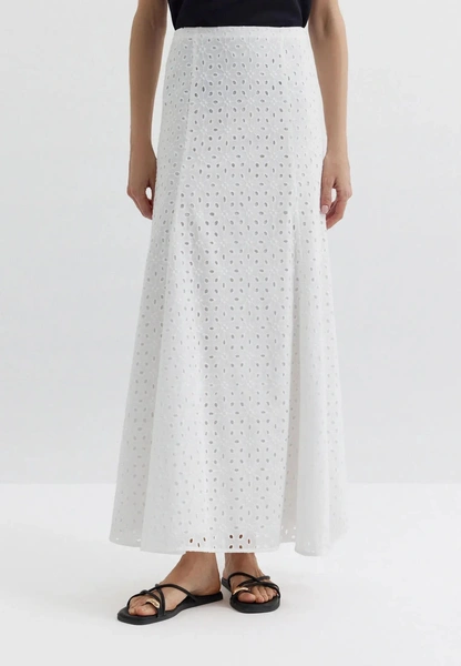 Вышивка ришелье или классическая ручная работа — именно она превращает обычную белую юбку в произведение искусства. Такие модели часто делают из тонкого хлопка или льна, а вышивка располагается по подолу или в виде нежных вставок по всей длине. Образ с такой юбкой не требует дополнительных аксессуаров: достаточно надеть простой топ, распустить волосы, и вечерний выход готов 😍