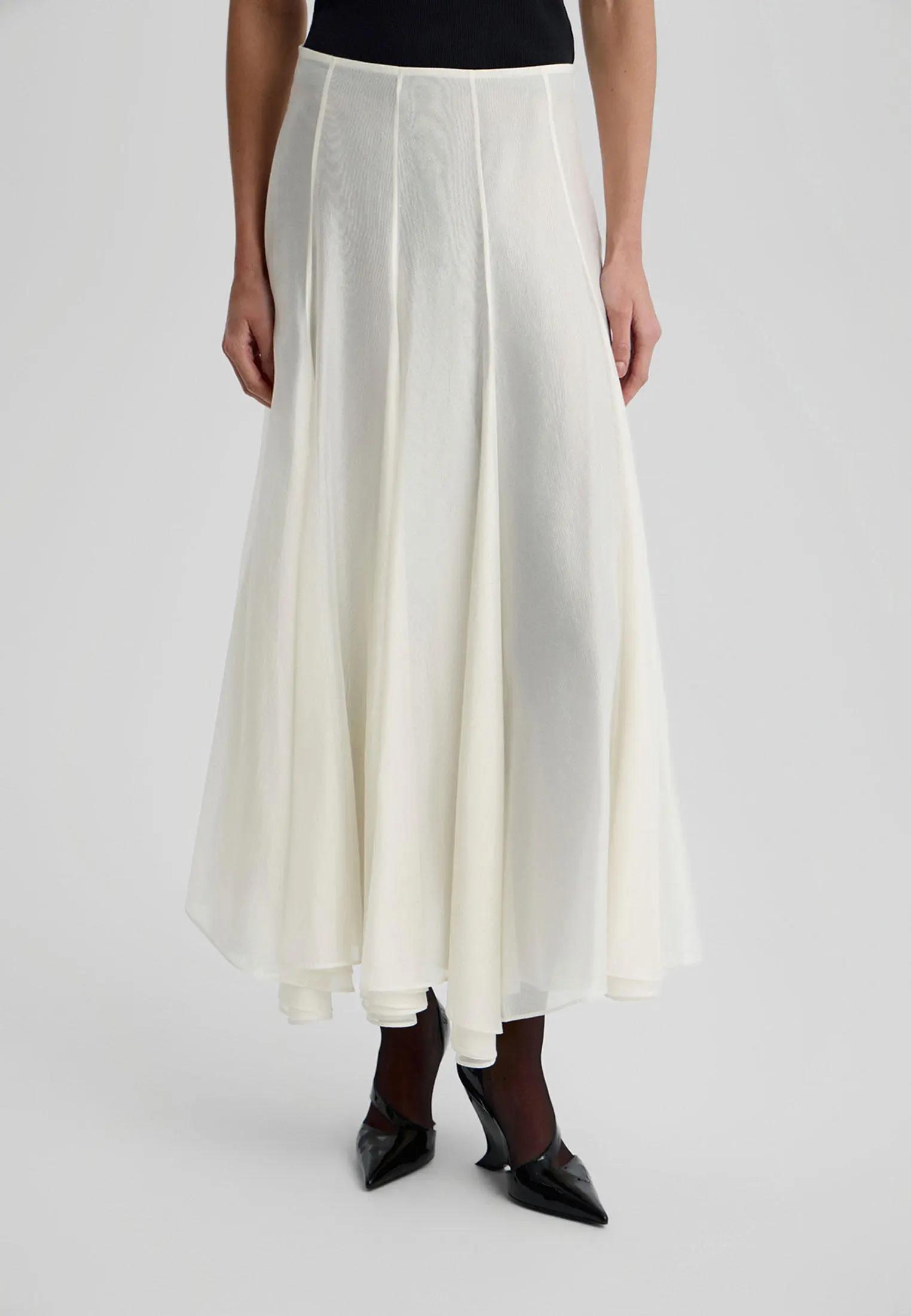 Главный маст-хэв сезона, с которого стоит начать. Хлопковая юбка-солнце расклешается от талии и создает аккуратный объем, который делает образ одновременно невесомым и статусным. Белый цвет здесь работает идеально: он подчеркивает игру света и тени на складках. Носи ее с простым топом или футболкой, чуть заправленной внутрь, чтобы акцентировать талию. Обувь можно выбрать любую — от кед и мокасинов до сандалий и босоножек на каблуке.