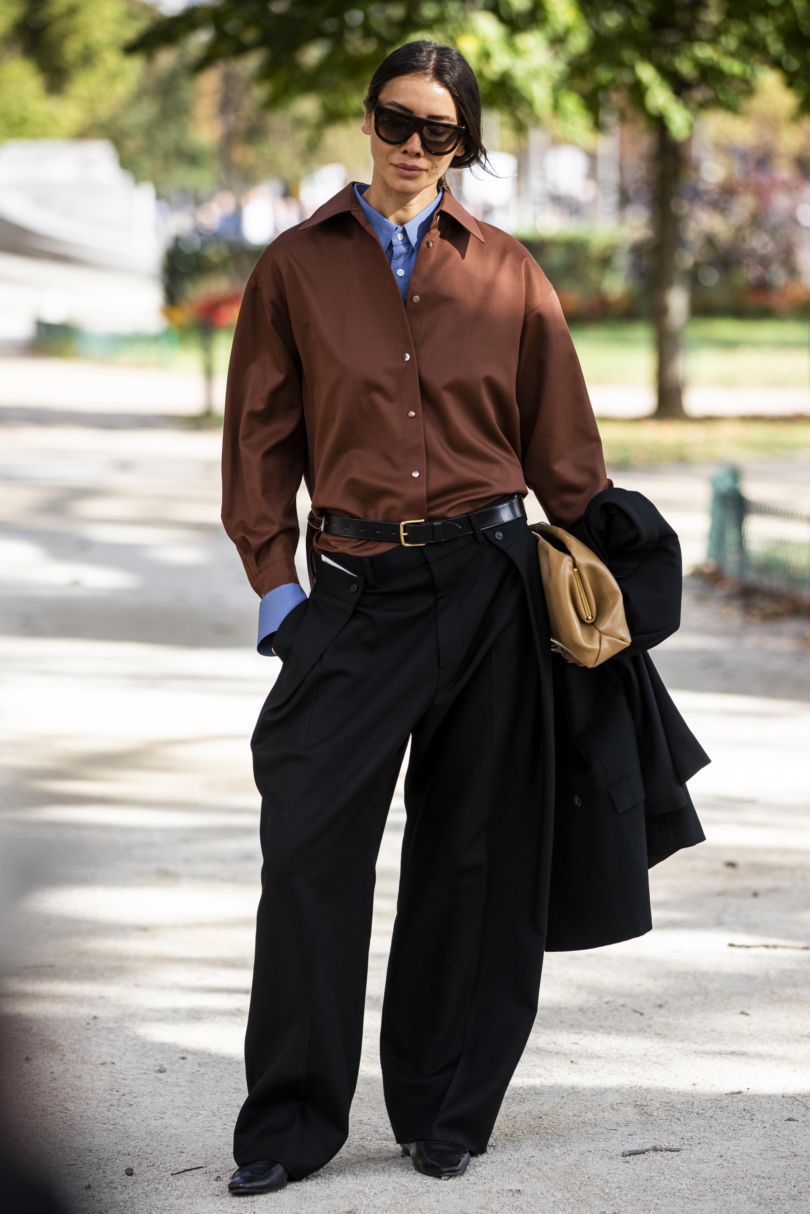 Джули Пелипас — еще один источник вдохновения. Ее образы всегда находятся на стыке классики и современности. Для одного из своих выходов она выбрала сочетание синей рубашки и шоколадной, надетой сверху. К этому ансамблю она добавила элегантные брюки и неподвластный времени пояс. Две рубашки, которые в одиночку смотрелись бы слишком стандартно, вместе образуют гармонию. И именно это сочетание превращает лук в модное заявление.