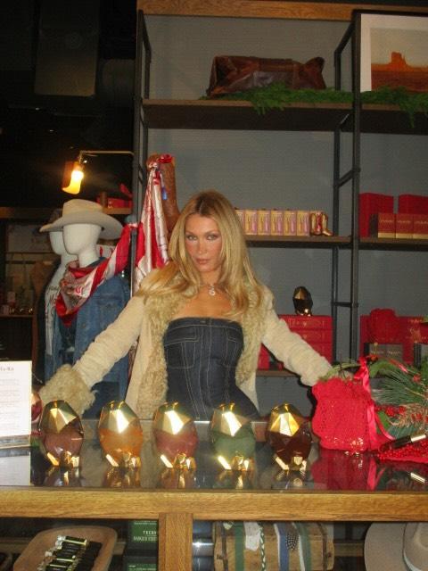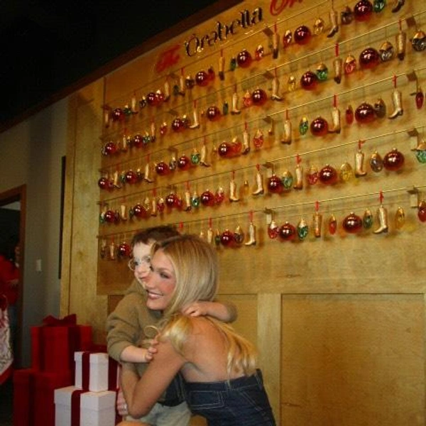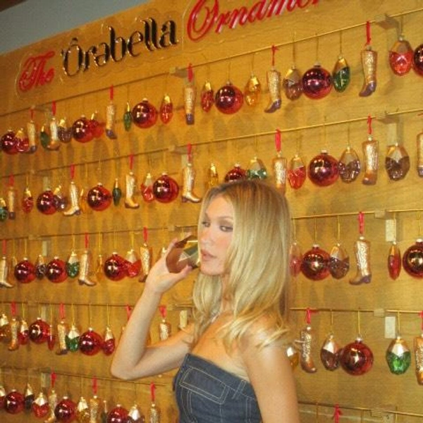 Праздничная витрина выглядит как настоящая техасская новогодняя сказка 😁 Елочные игрушки выполнены в форме мини-флаконов духов Orebella, аккуратно развешаны на золотистый держателях, а рядом — крошечные ковбойские сапожки, ставшие символом эстетики, которую Белла последовательно развивает последние два года.