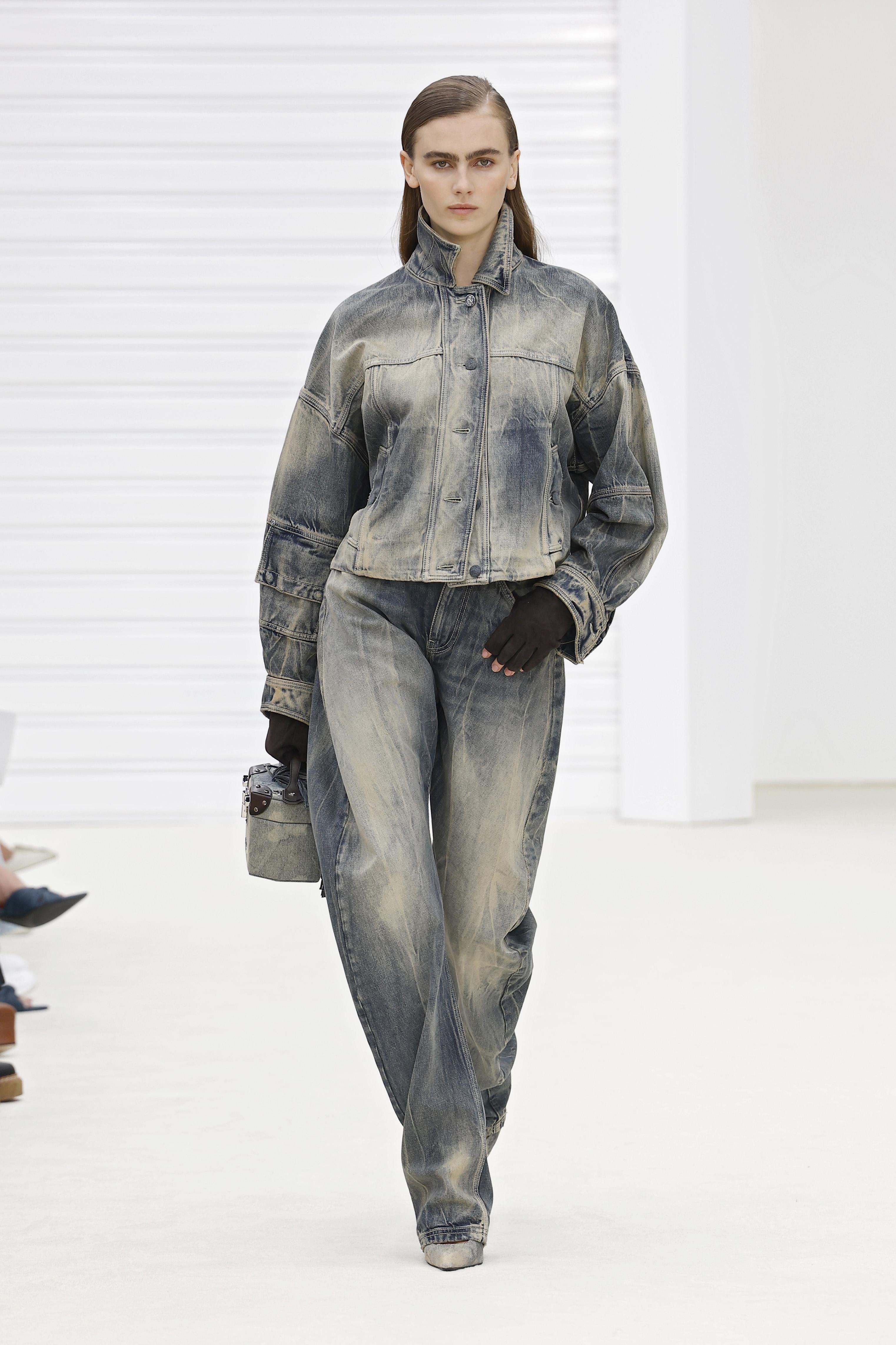 Возвращение джинсов-бочек во многом связано с показами последних сезонов. Дом Alaïa под руководством Питера Мюлье уже в сезоне осень-зима 2023–2024 предложил современную версию этого кроя: структурированные джинсы, почти скульптурные, в паре с такой же выверенной рубашкой. Это был не просто эксперимент, а четкое заявление о новом подходе к дениму. Позже идею подхватили и другие бренды.