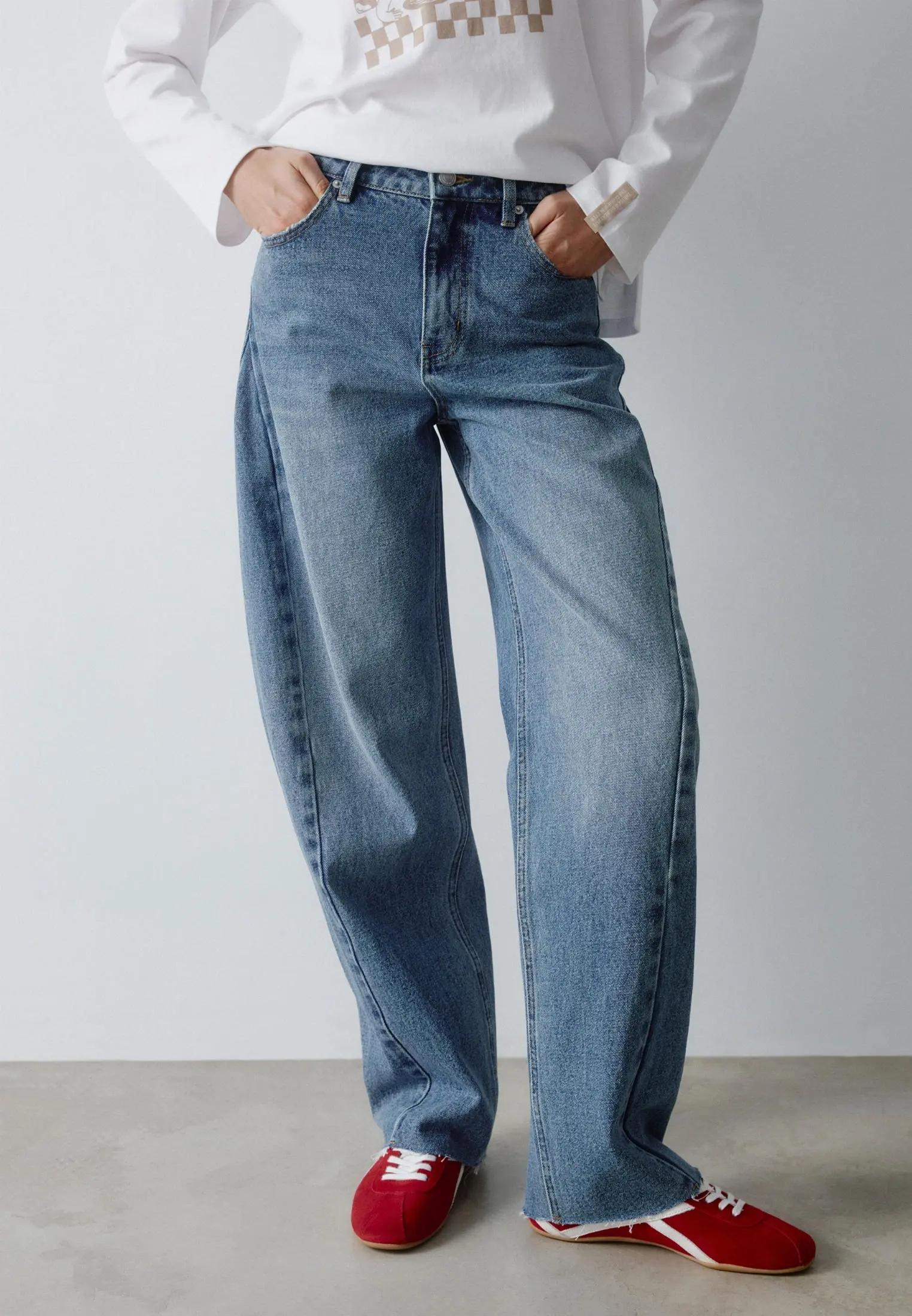 Название говорит само за себя. Barrel, или Horseshoe Jeans, повторяют форму бочки: они расширяются в области бедер и постепенно сужаются к щиколоткам. Изогнутые линии создаются за счет продуманного кроя, а не объема ради объема. Часто такие джинсы имеют укороченную длину и слегка неровный край, что добавляет образу непринужденности. Важную роль играют вытачки на коленях и икрах — именно они формируют характерный силуэт, который выглядит архитектурно.