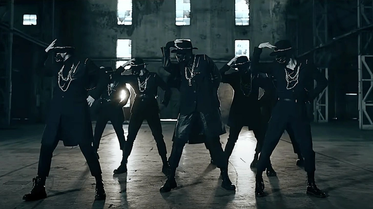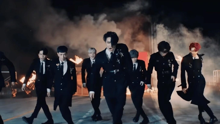 Поворотным моментом стал промоушен Hala Hala. Концепция была куда мрачнее и динамичнее: черные перчатки, длинные плащи, высокие ботинки, контрастные красные элементы. Уён оказался одним из тех, кому такой драматизм шел особенно хорошо — угловатый макияж, подчеркнутые скулы и строгие силуэты делали его образ почти хищным.