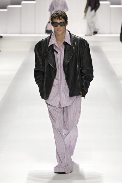 Еще один заметный тренд, который можно увидеть также в женских коллекциях, — пижамный стиль. В ходу как целые брючные комплекты из хлопка или шелка, так и отдельные элементы: полосатые брюки или рубашки с кантом как ни в чем не бывало сочетаются на подиумах с кожаными куртками, джинсами и пиджаками. Dolce & Gabbana даже посвятили этому отдельную линию Pyjama Boys, напомнив, что пижамный стиль может быть разным: и нарочито роскошным — с кристаллами и пайетками, и предельно простым, из обычного хлопка, без блесток и лишнего пафоса.