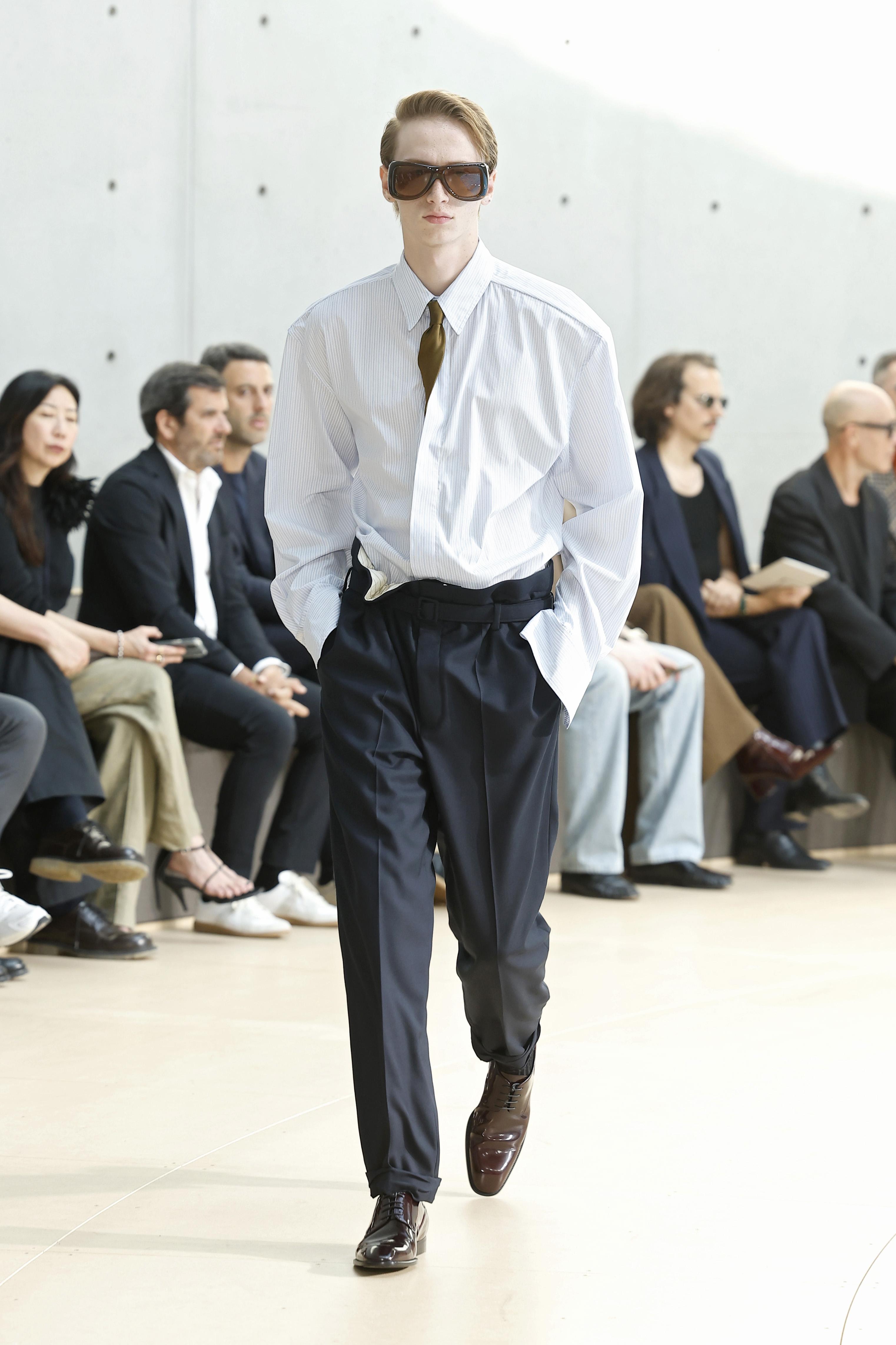 Самый простой и самый недооцененный тренд. Заправленная в брюки рубашка моментально меняет пропорции и делает образ собранным. И да, обозначенная талия на мужчинах работает не хуже, чем на женщинах. Это красиво, современно и почему-то многими до сих пор игнорируется. Парни, прислушайтесь к подиумам хоть в этом решении 🙃